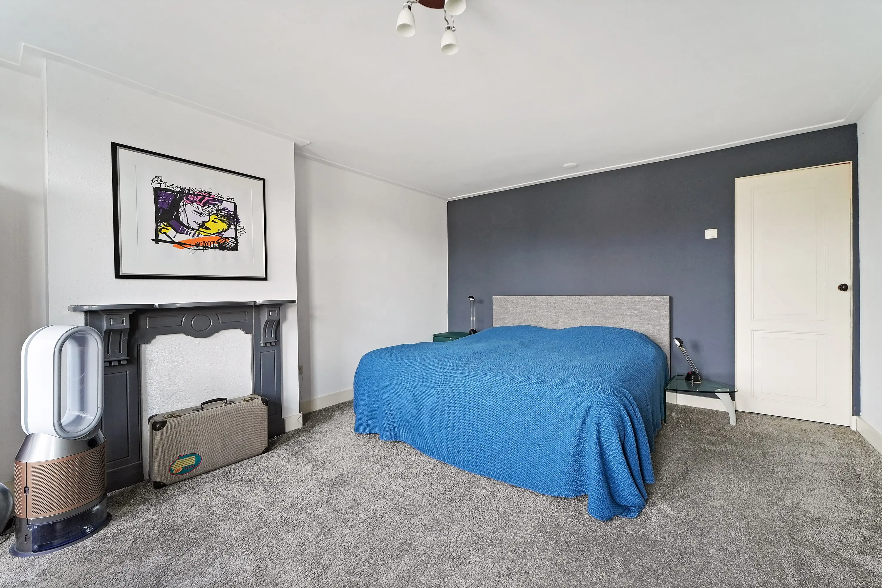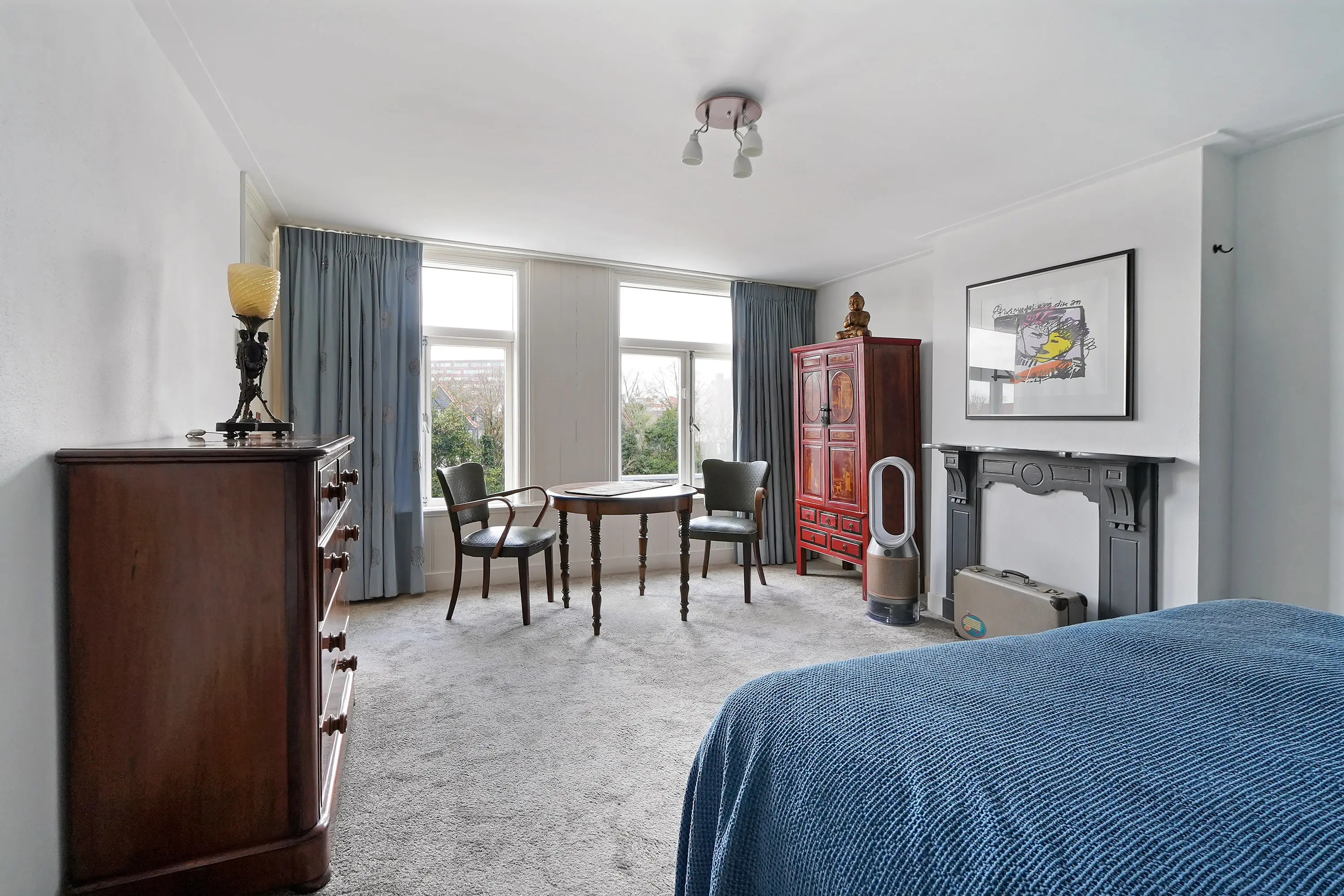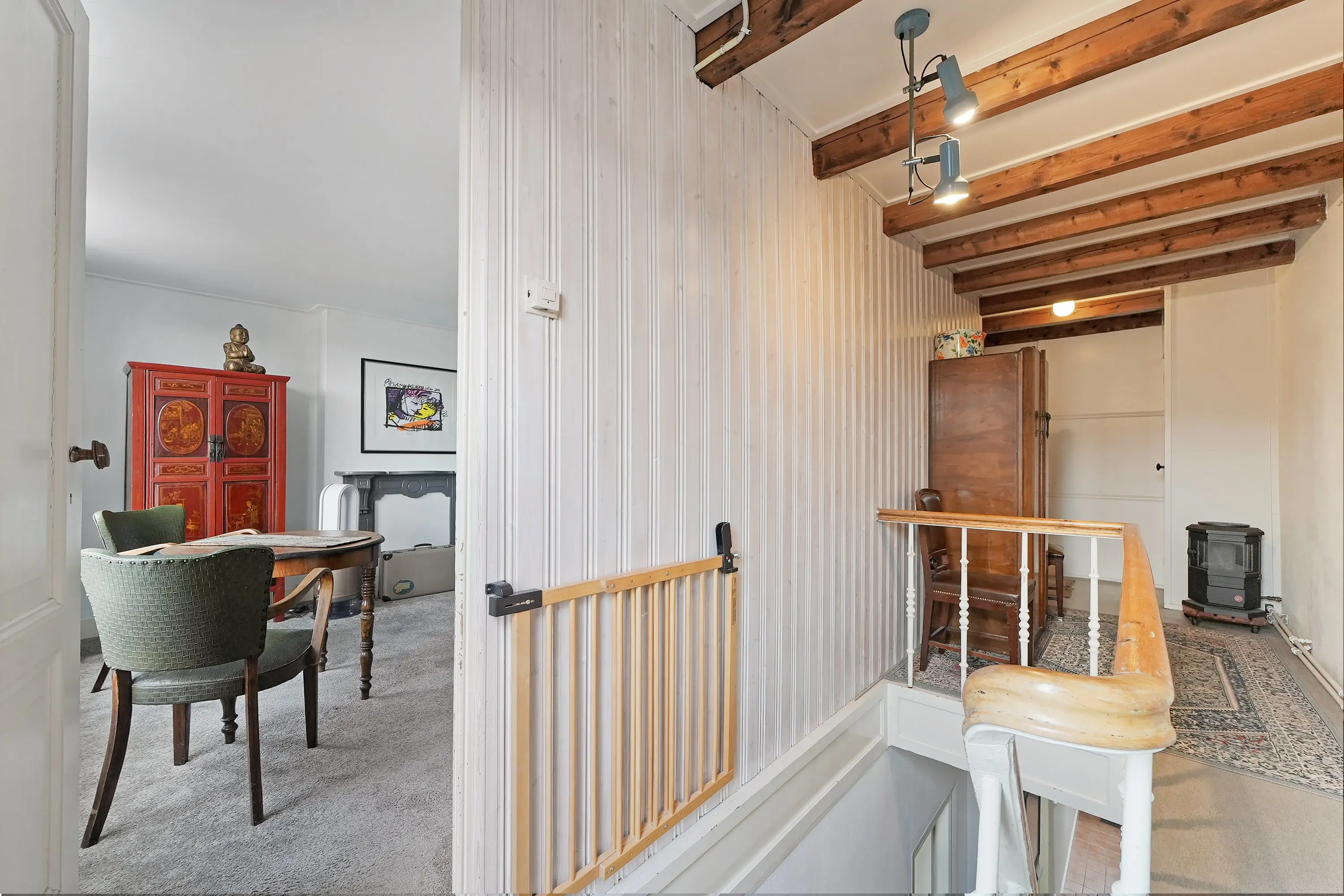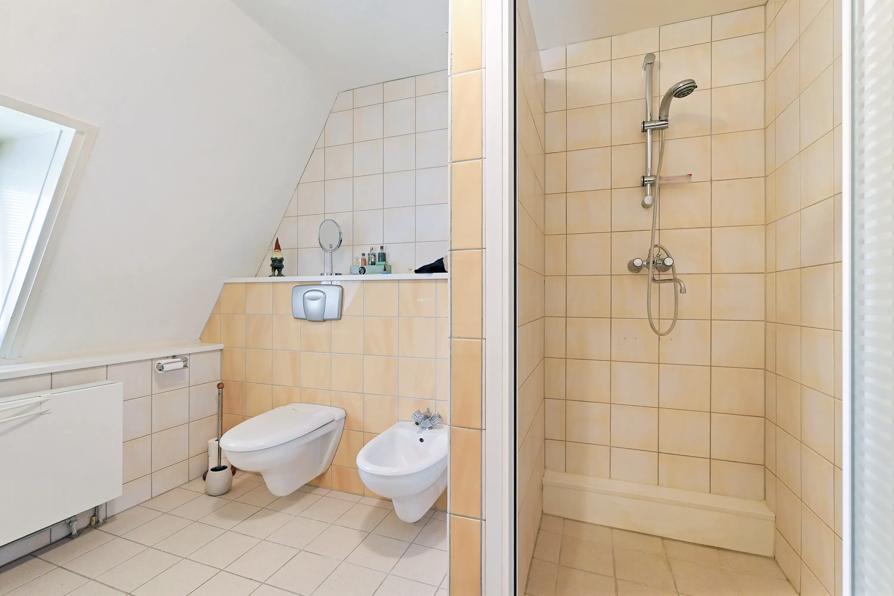 Via de elegante houten trap bereikt u de overloop die toegang biedt tot de slaapkamers, waaronder de meer dan royale ouderslaapkamer, ofwel de master bedroom aan de tuinzijde. De slaapkamer aan de voorzijde is eveneens ruim van opzet en beschikt over een charmante kleine dakkapel. Naast deze kamer bevindt zich de badkamer, voorzien van een inloopdouche, tweede toilet, bidet en wastafelmeubel. Ook hier is een kleine dakkapel aanwezig. Verder vindt u op de overloop een nette vaste opbergruimte en een vaste kast.