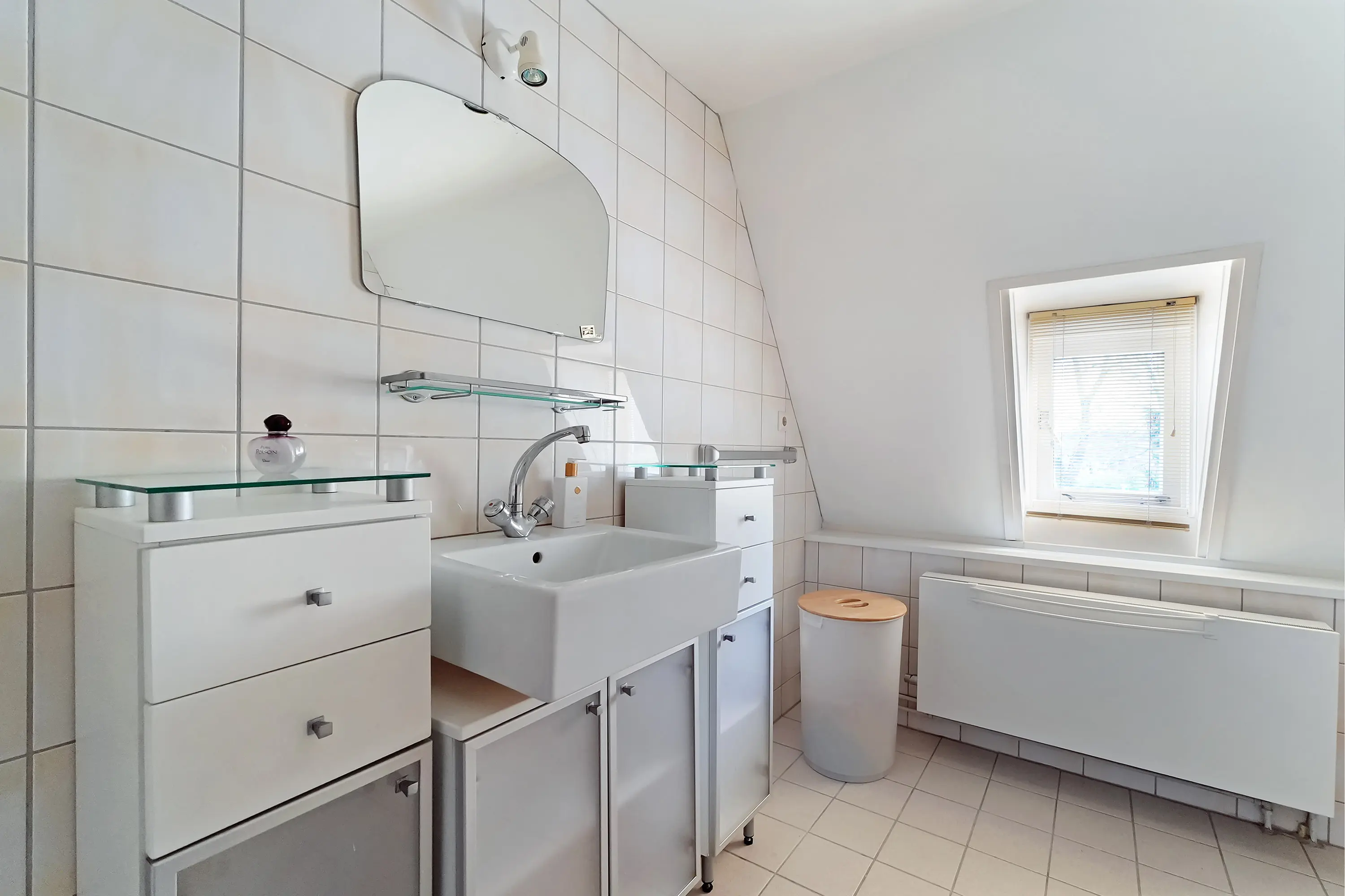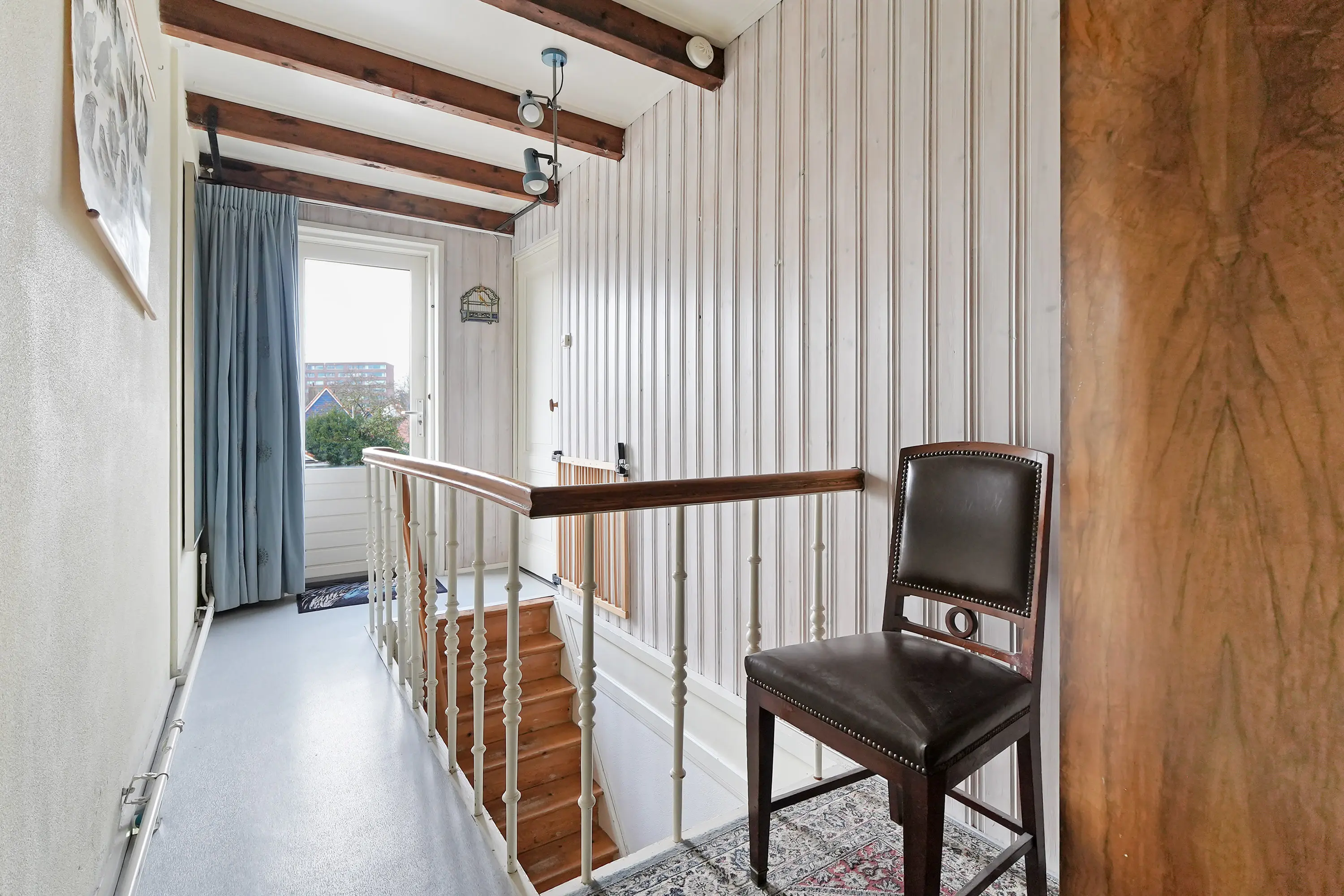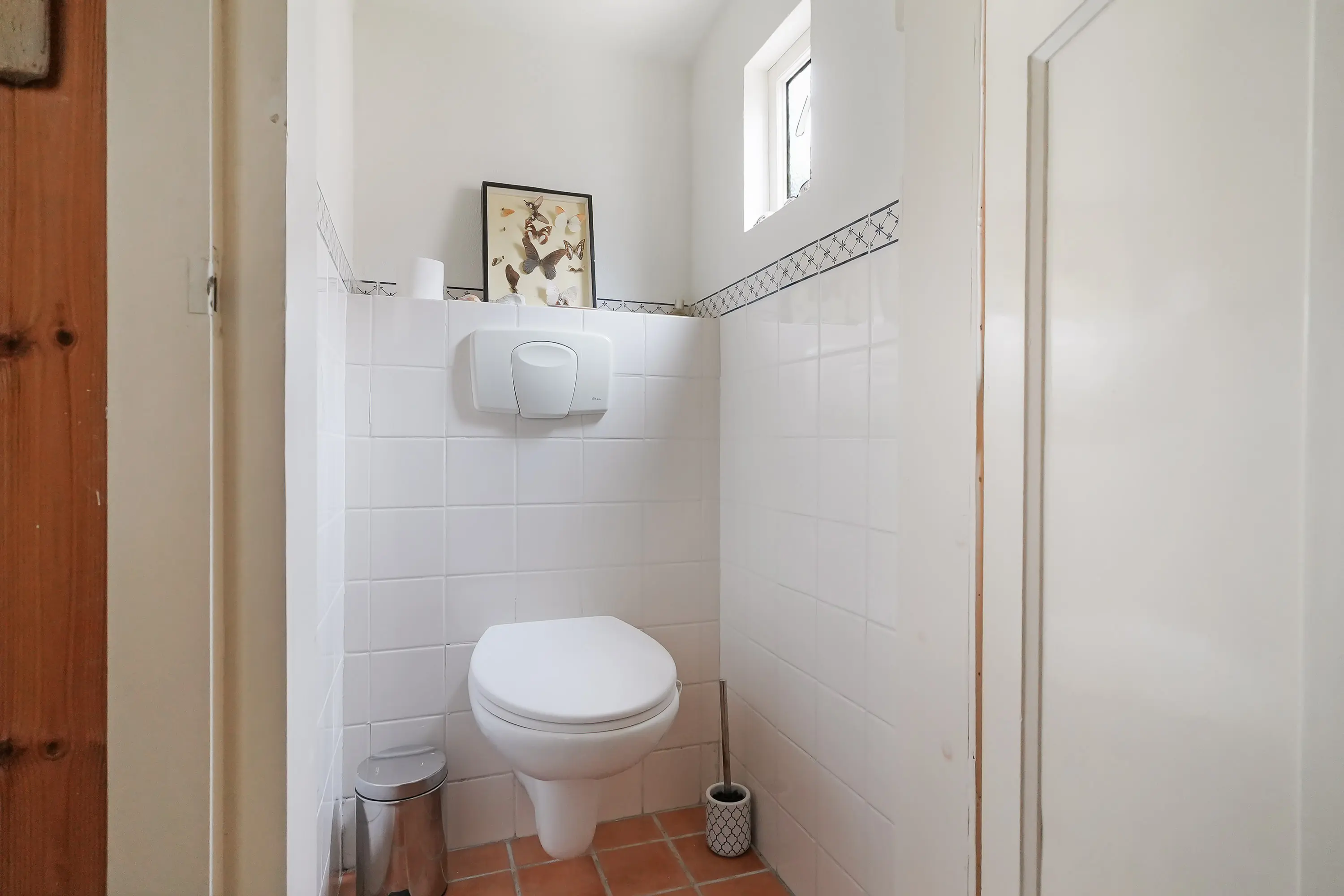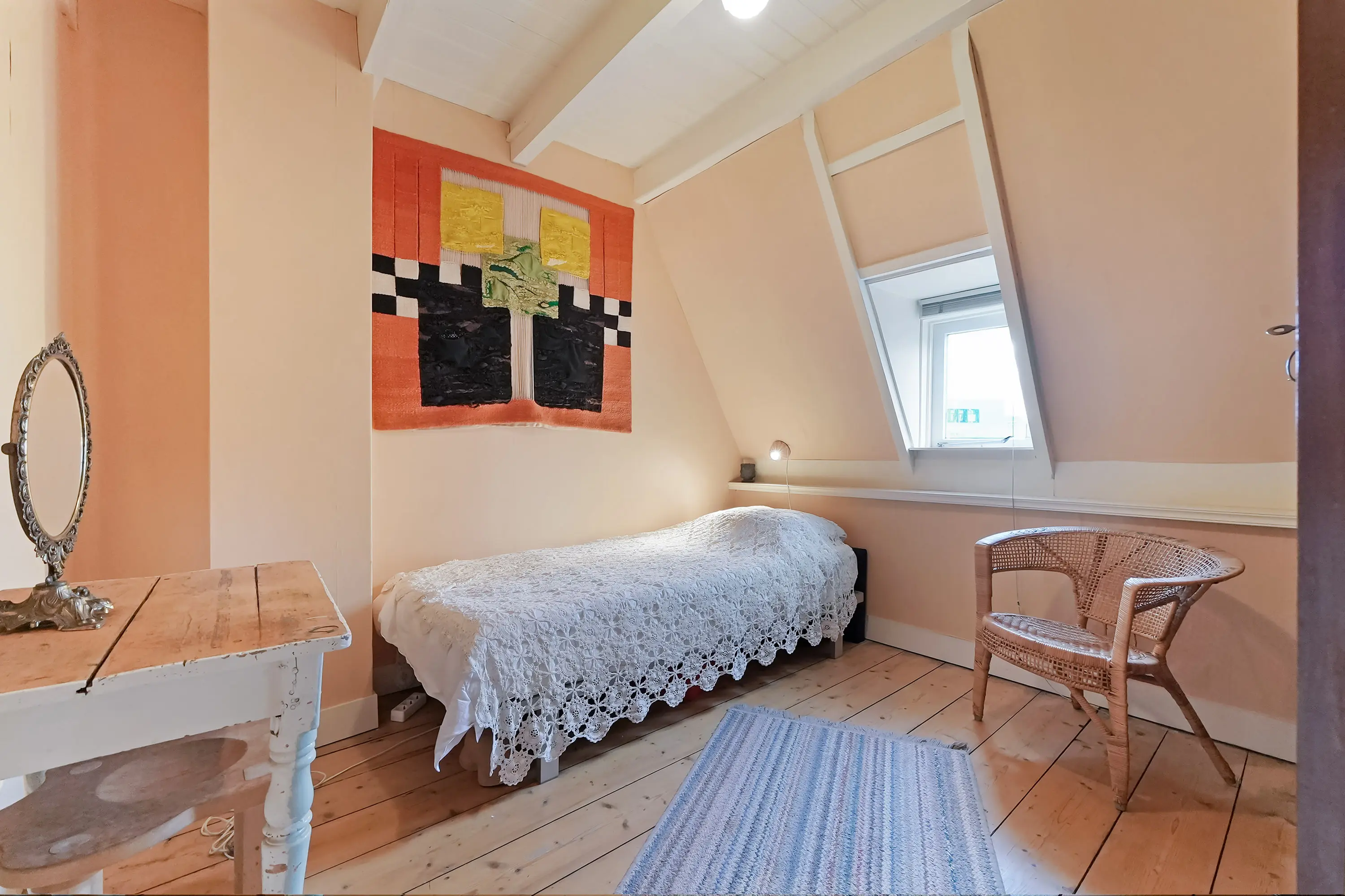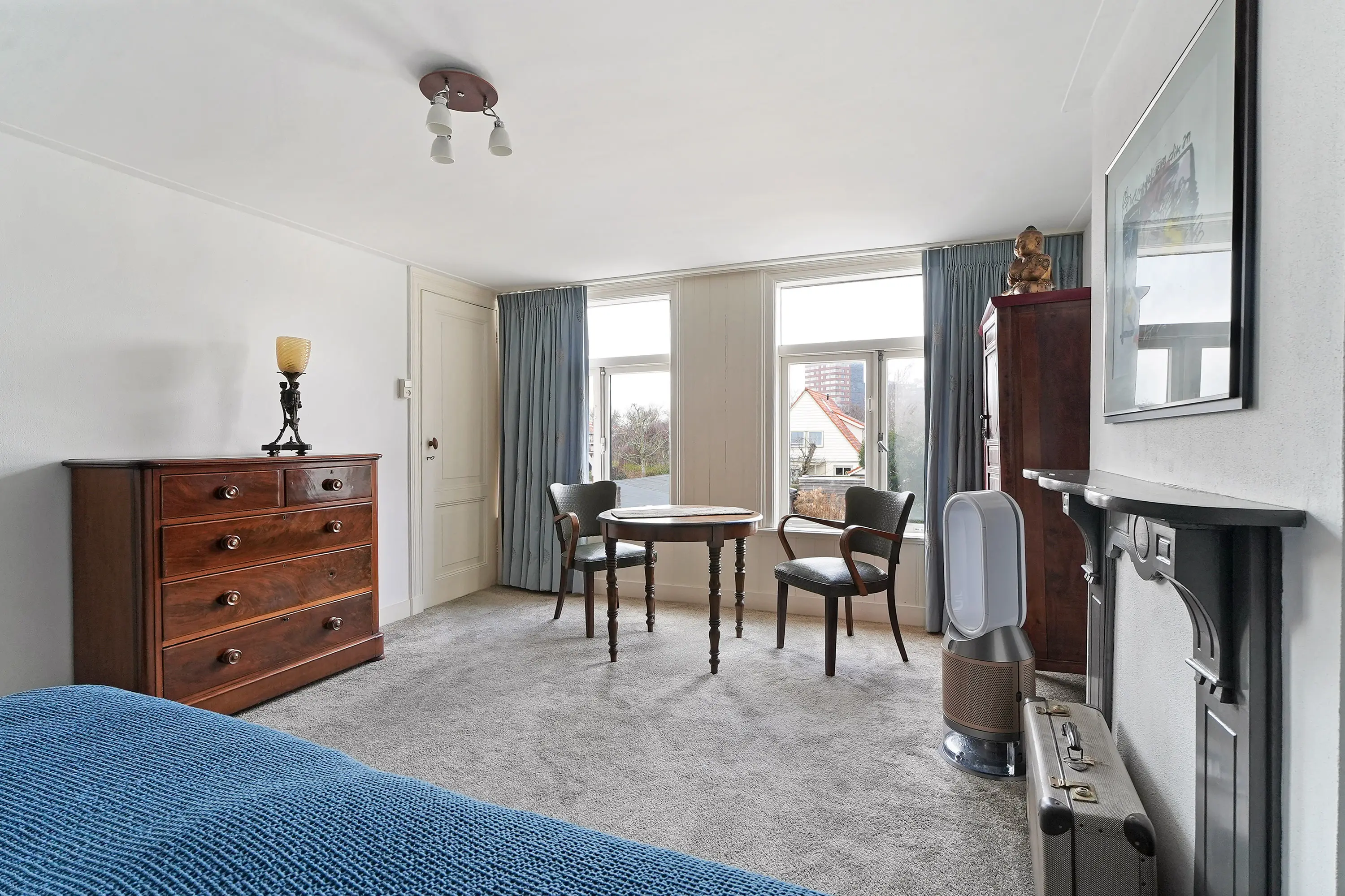 Via de elegante houten trap bereikt u de overloop die toegang biedt tot de slaapkamers, waaronder de meer dan royale ouderslaapkamer, ofwel de master bedroom aan de tuinzijde. De slaapkamer aan de voorzijde is eveneens ruim van opzet en beschikt over een charmante kleine dakkapel. Naast deze kamer bevindt zich de badkamer, voorzien van een inloopdouche, tweede toilet, bidet en wastafelmeubel. Ook hier is een kleine dakkapel aanwezig. Verder vindt u op de overloop een nette vaste opbergruimte en een vaste kast.
