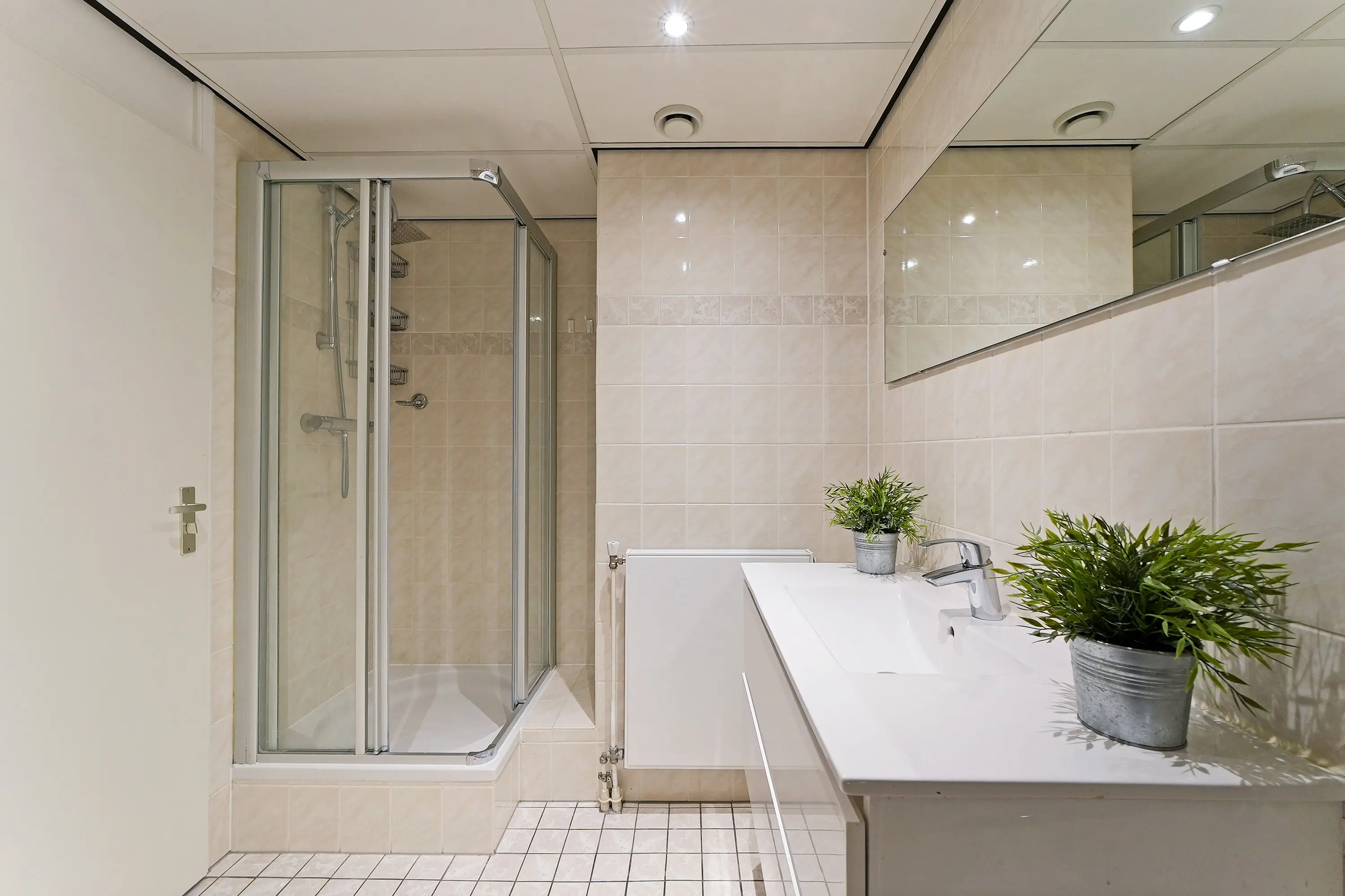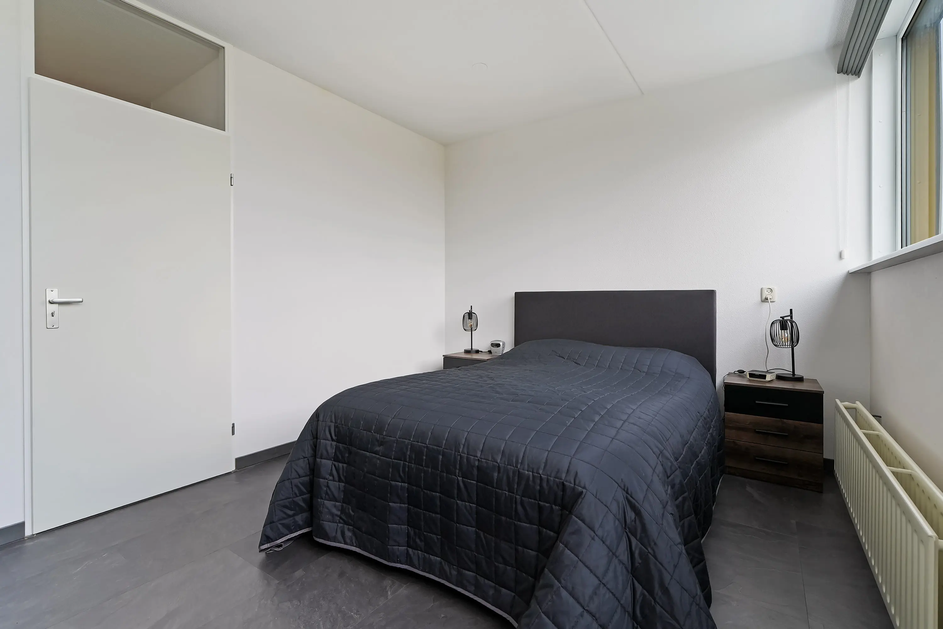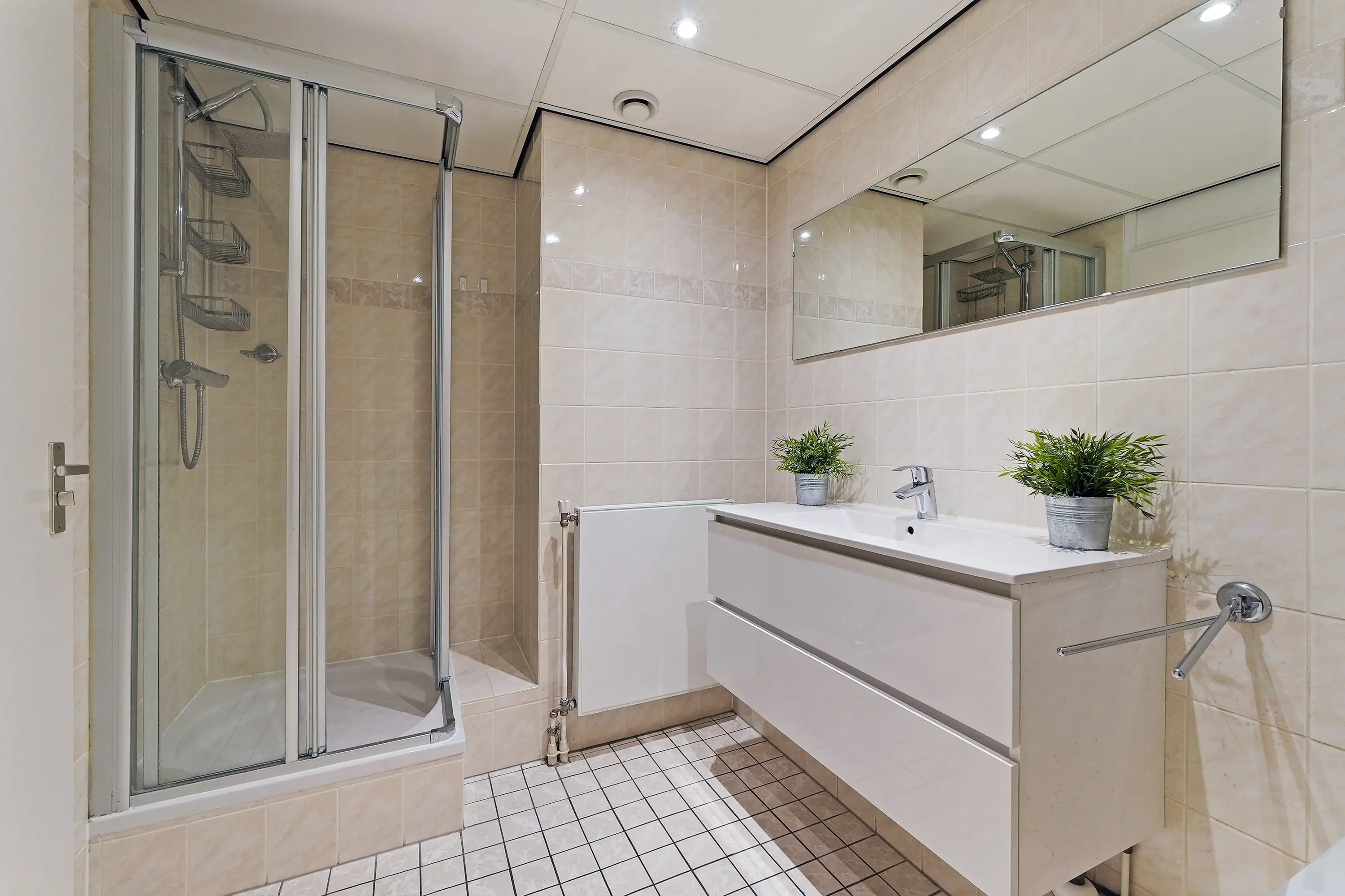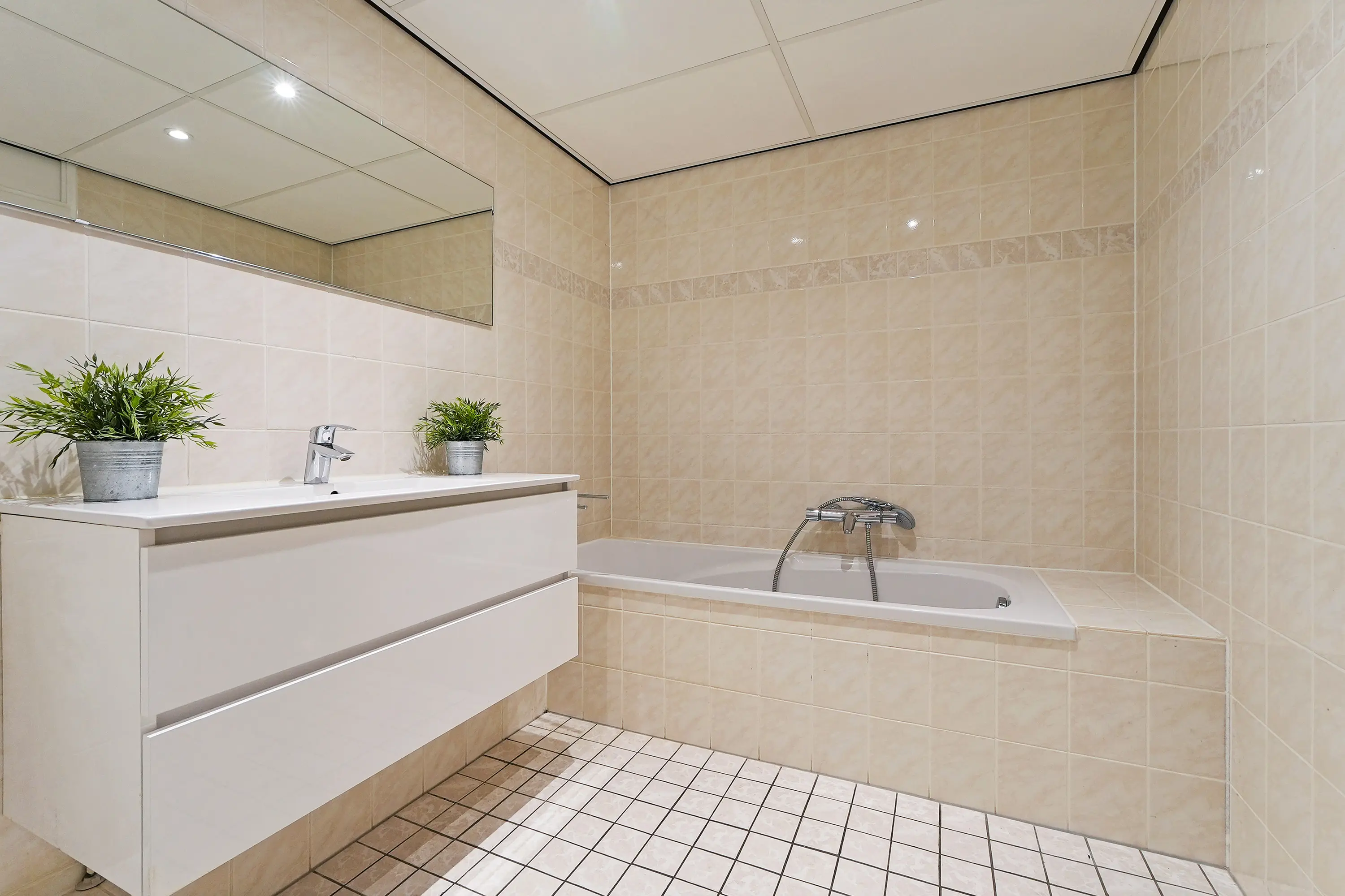 Aan de voorzijde van het appartement bevinden zich twee ruime slaapkamers, waaronder de royale ouderslaapkamer. De tweede slaapkamer is voorzien van een fraaie ingebouwde kastenwand. De badkamer en het toilet zijn eveneens bereikbar vanuit de hal. De verzorgde badkamer is voorzien van een groot ligbad, een aparte douche en een dubbel wastafelmeubel.