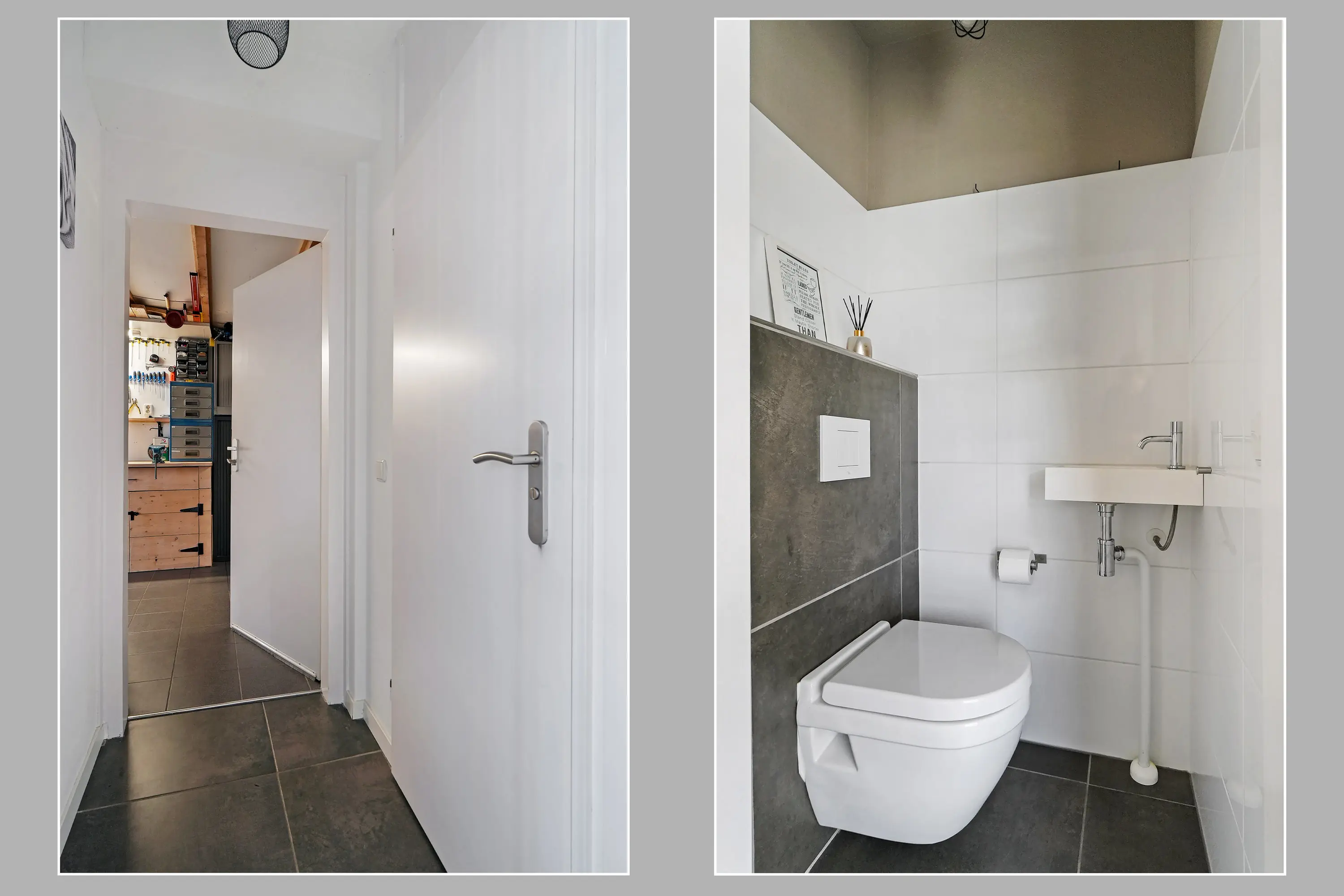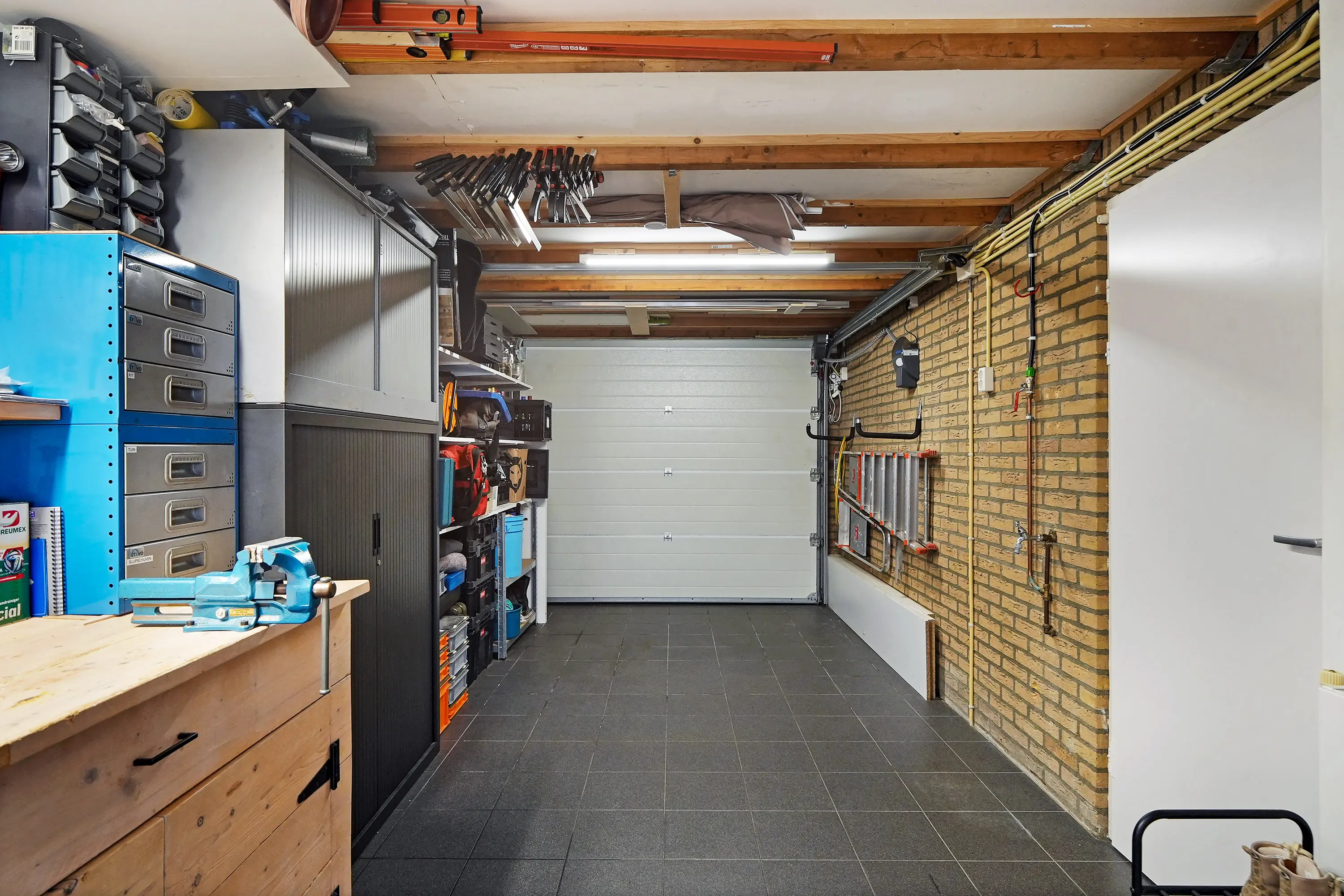 Vanuit de tussenhal bereikt u het toilet met wandcloset en fonteintje en heeft u toegang tot de verwarmde en geïsoleerde garage. Deze ruimte is voorzien van dak- en vloerisolatie, verwarming, wateraansluiting en een elektrische sectionaaldeur, waardoor hij multifunctioneel te gebruiken is. Vanuit de garage loopt u zo door naar de uitnodigende veranda met doorkijkje naar de tuin.