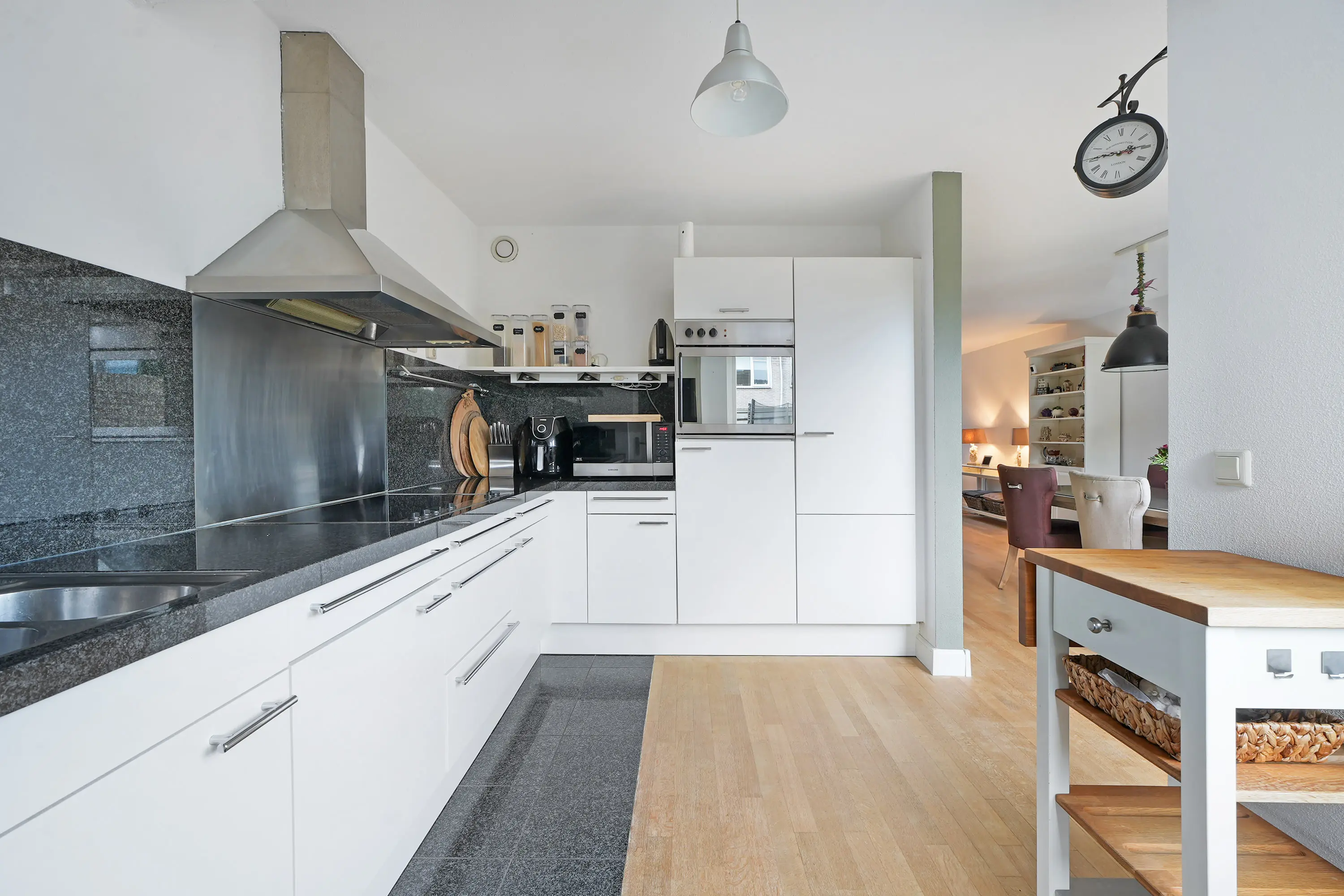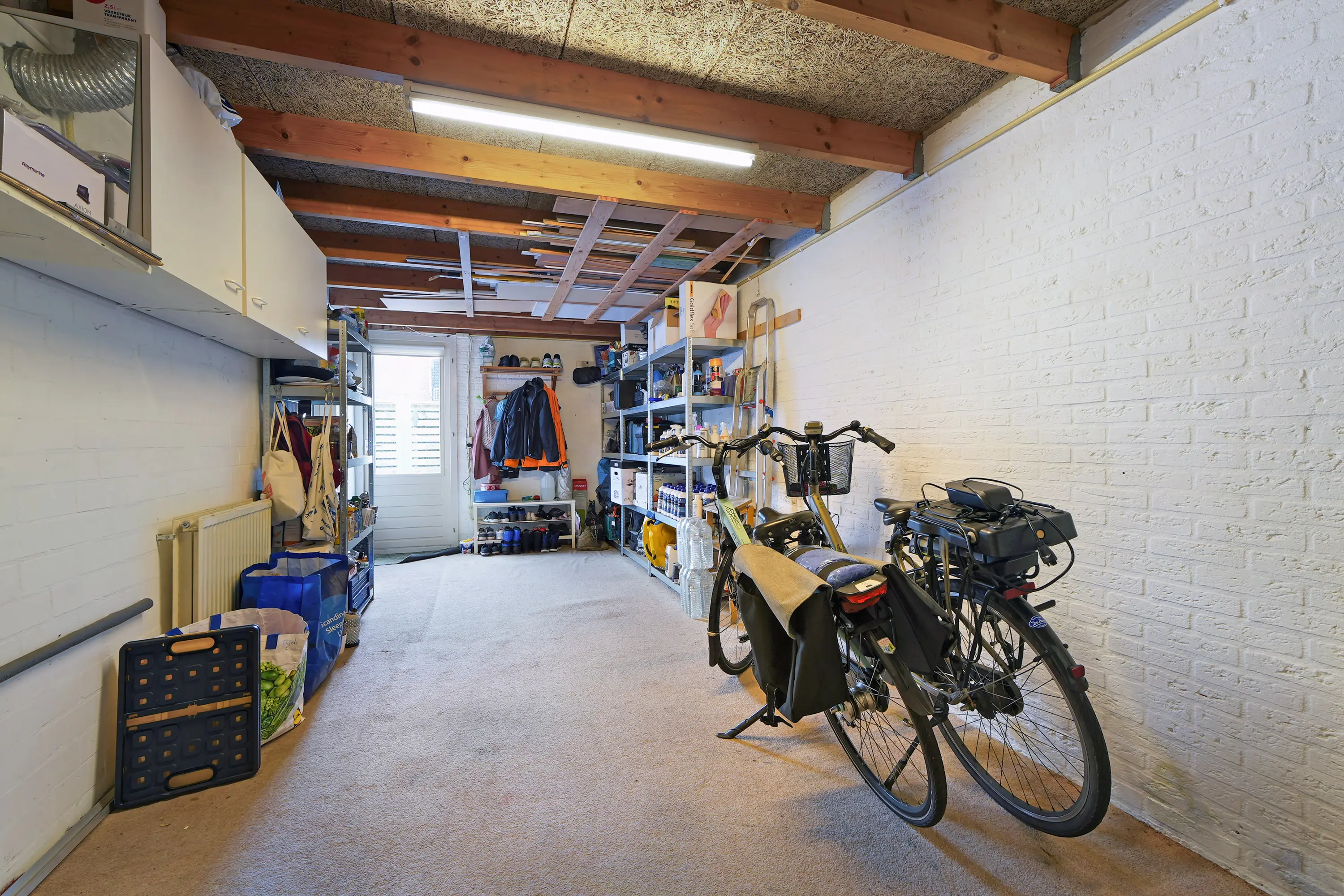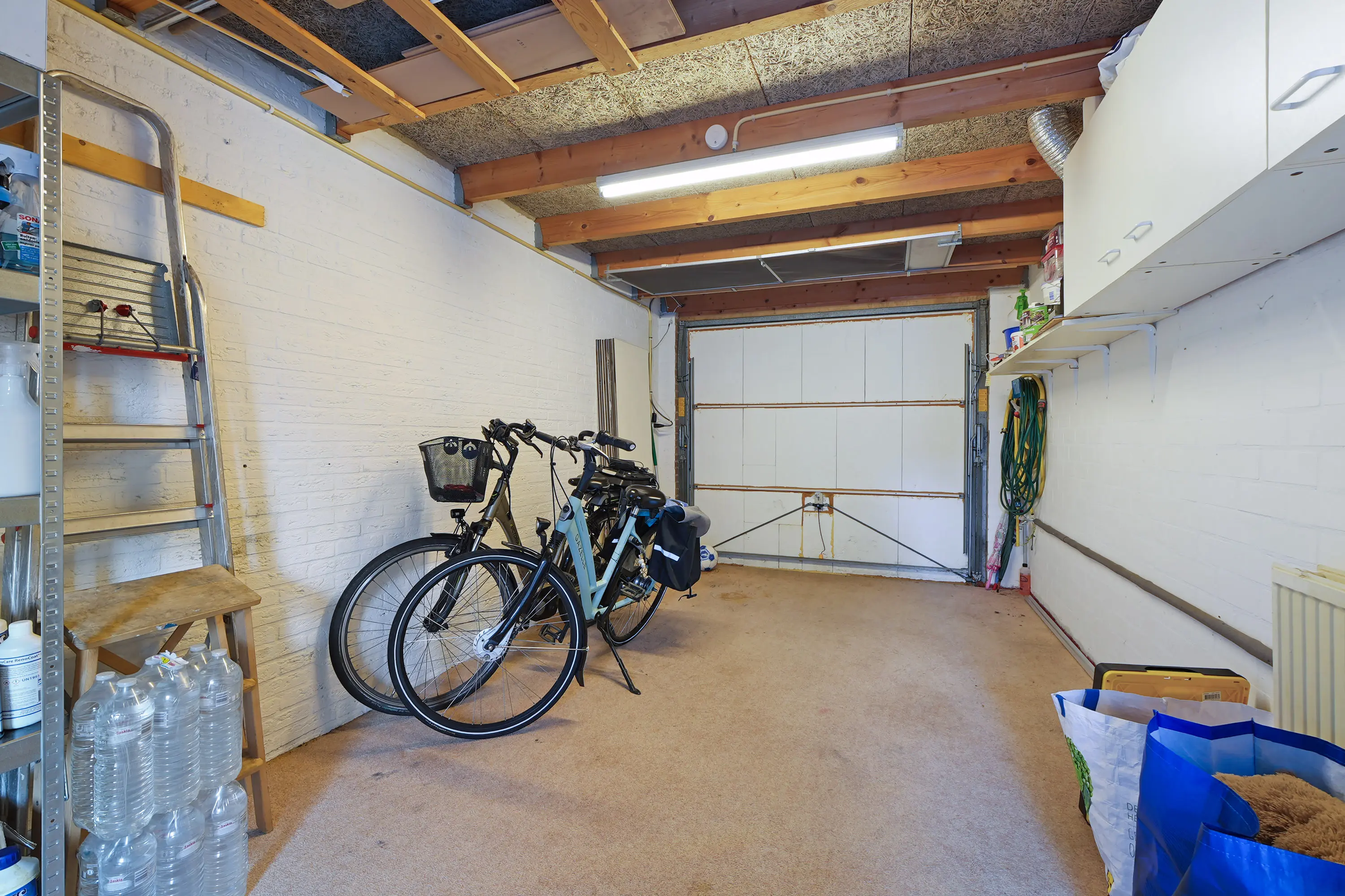 Via de entree met hal, toilet en trapopgang komt u in de ruime en lichte woonkamer. Dankzij de prettige indeling is er volop ruimte voor zowel een gezellige zithoek als een fijne eethoek. Aan de achterzijde bevindt zich de moderne en tijdloze keuken, uitgevoerd in neutrale kleuren en voorzien van diverse inbouwapparatuur. Direct achter de keuken ligt de praktische bijkeuken met extra bergruimte en aansluitingen voor witgoed. Vanuit hier is ook de grote garage bereikbaar, ideaal voor opslag, hobby of het stallen van fietsen.