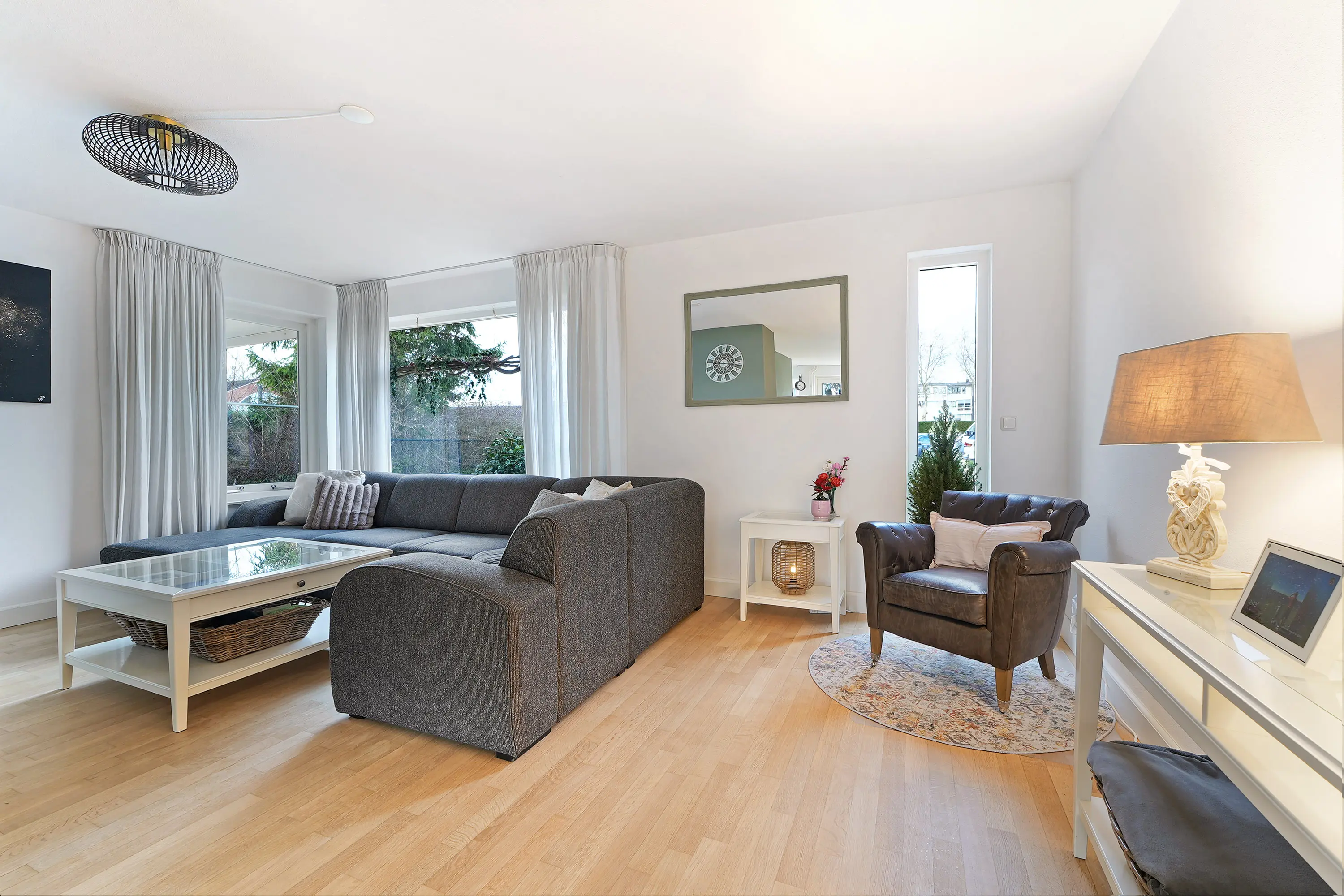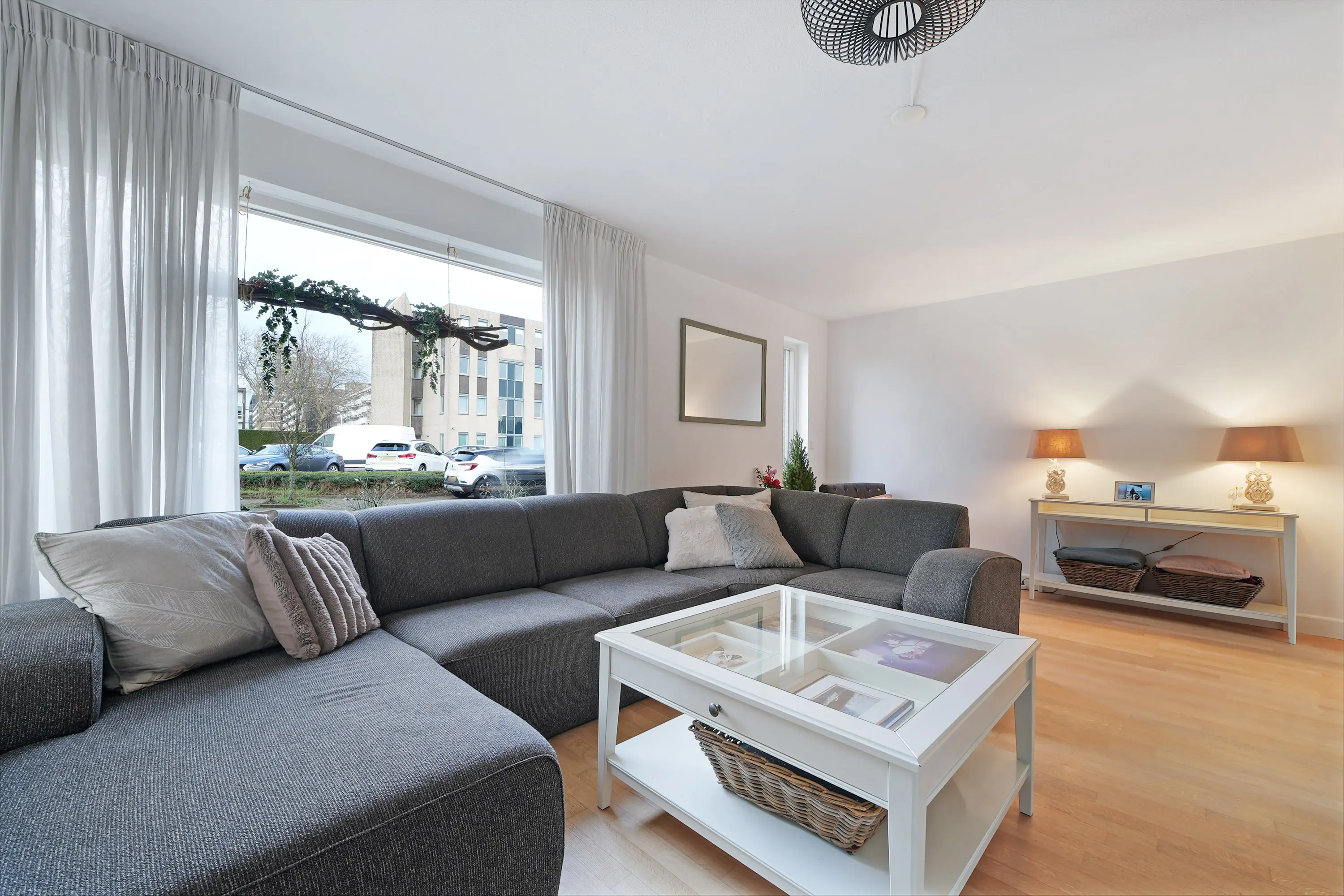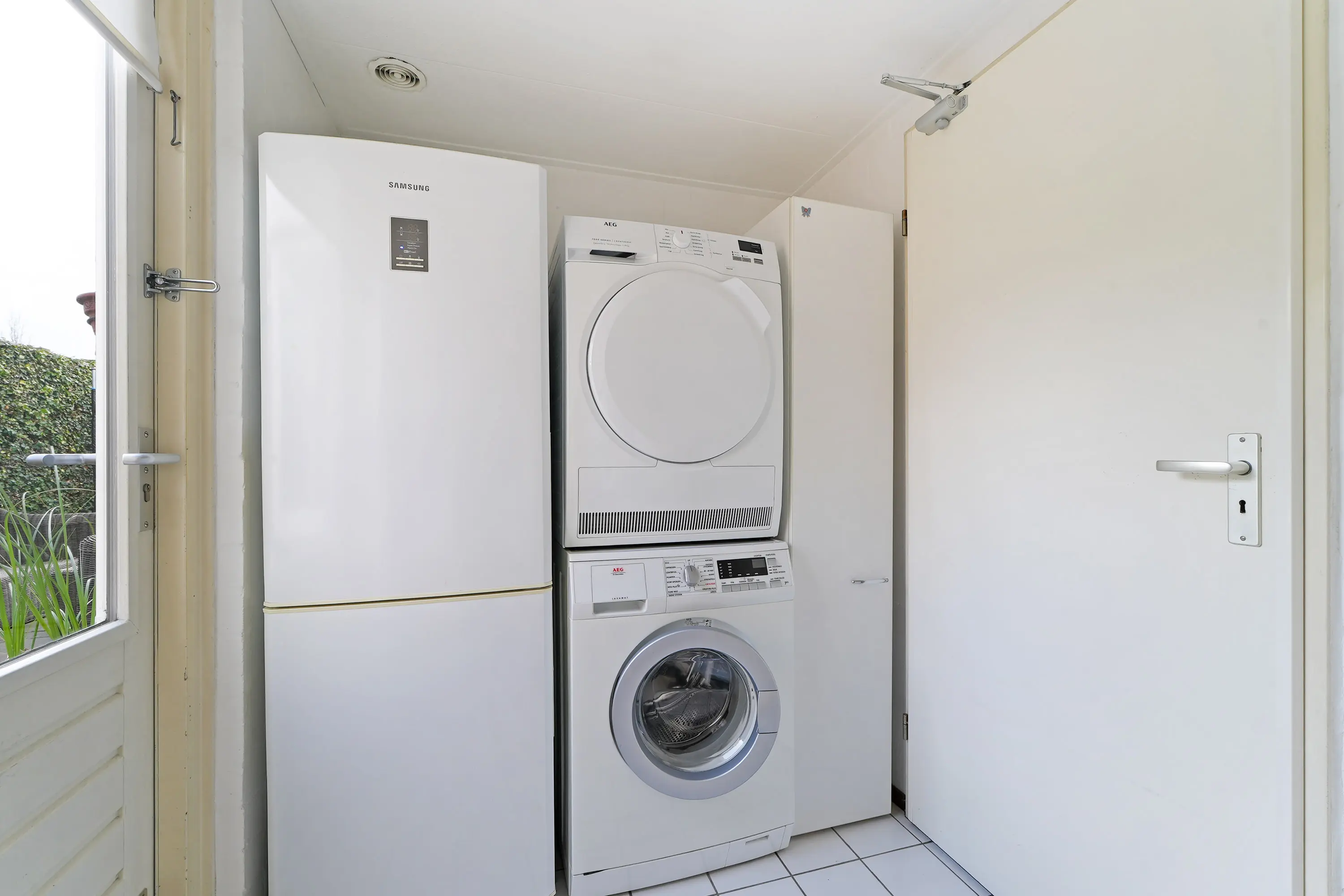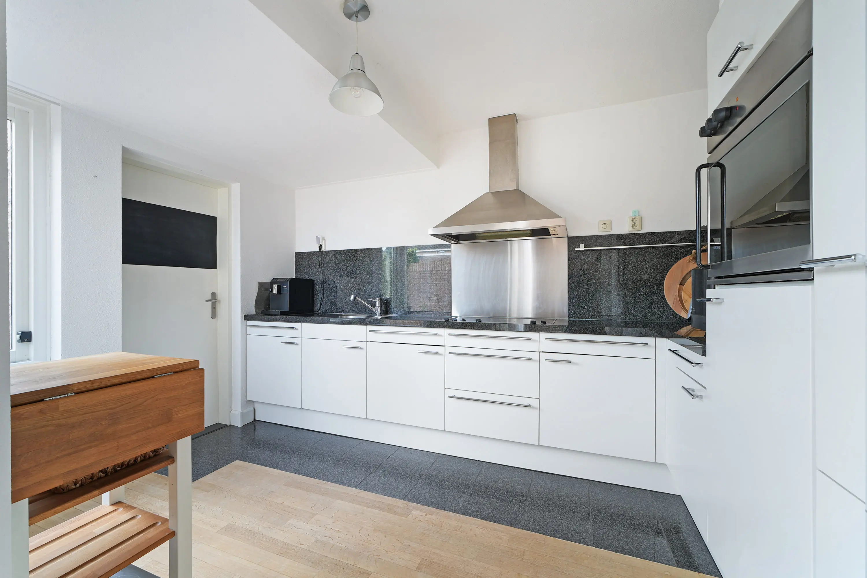 Via de entree met hal, toilet en trapopgang komt u in de ruime en lichte woonkamer. Dankzij de prettige indeling is er volop ruimte voor zowel een gezellige zithoek als een fijne eethoek. Aan de achterzijde bevindt zich de moderne en tijdloze keuken, uitgevoerd in neutrale kleuren en voorzien van diverse inbouwapparatuur. Direct achter de keuken ligt de praktische bijkeuken met extra bergruimte en aansluitingen voor witgoed. Vanuit hier is ook de grote garage bereikbaar, ideaal voor opslag, hobby of het stallen van fietsen.