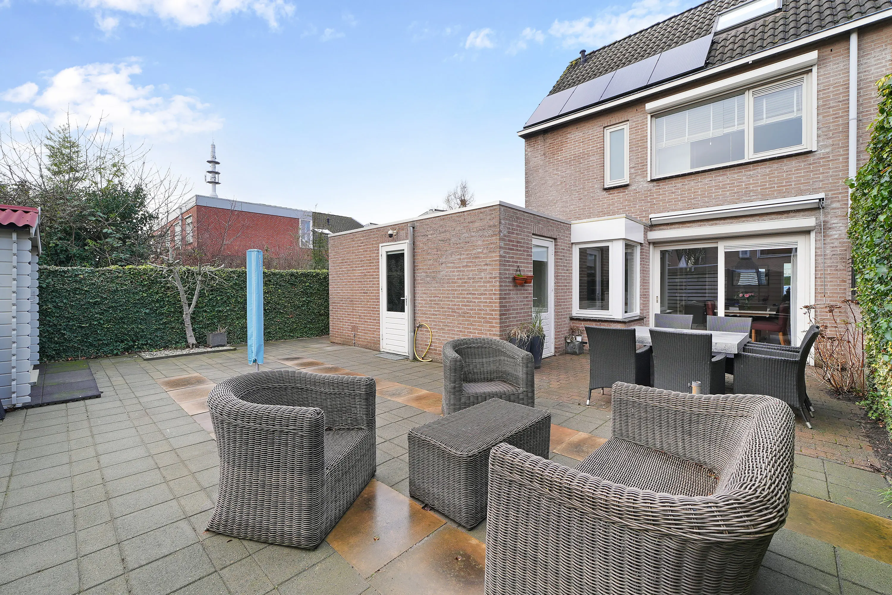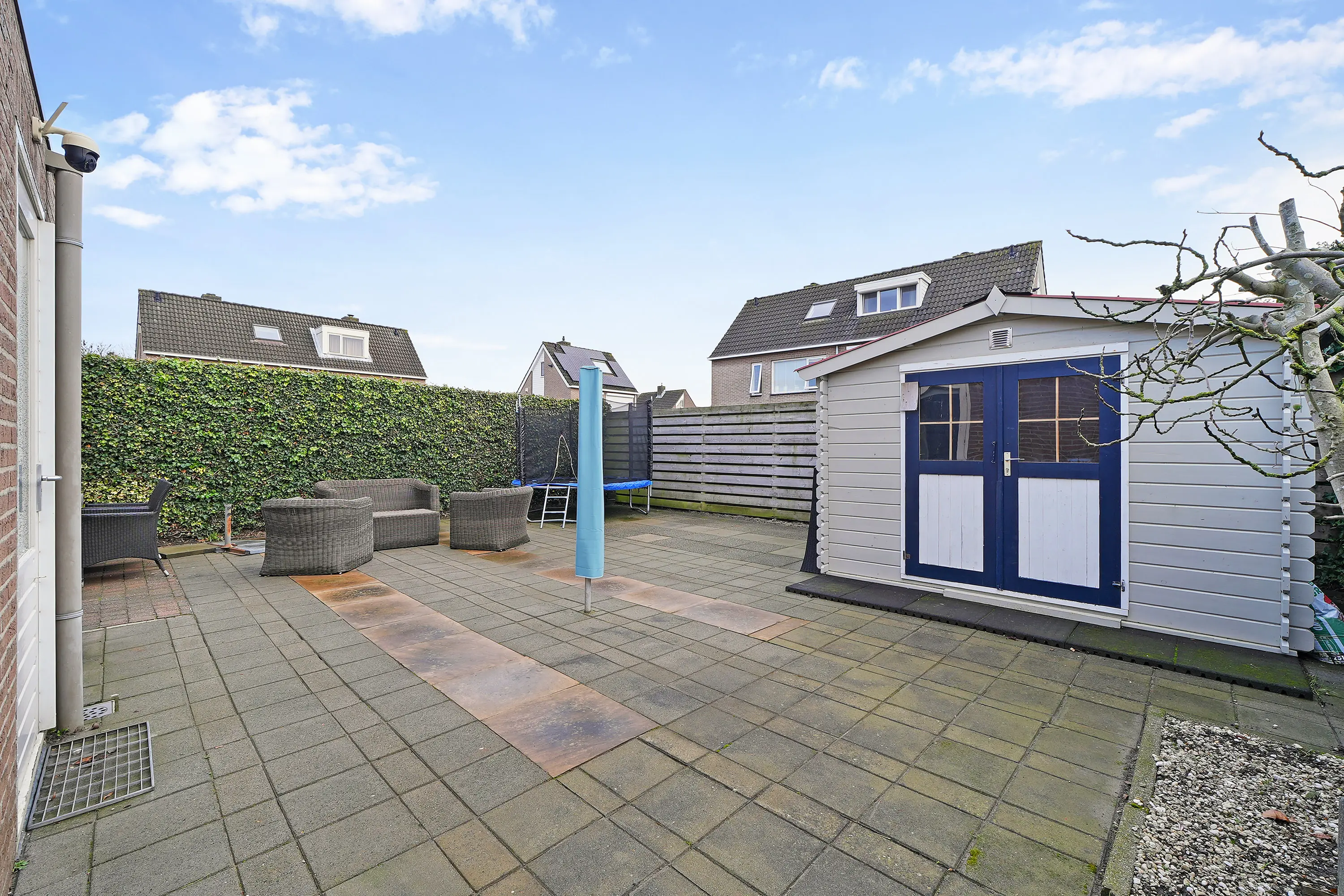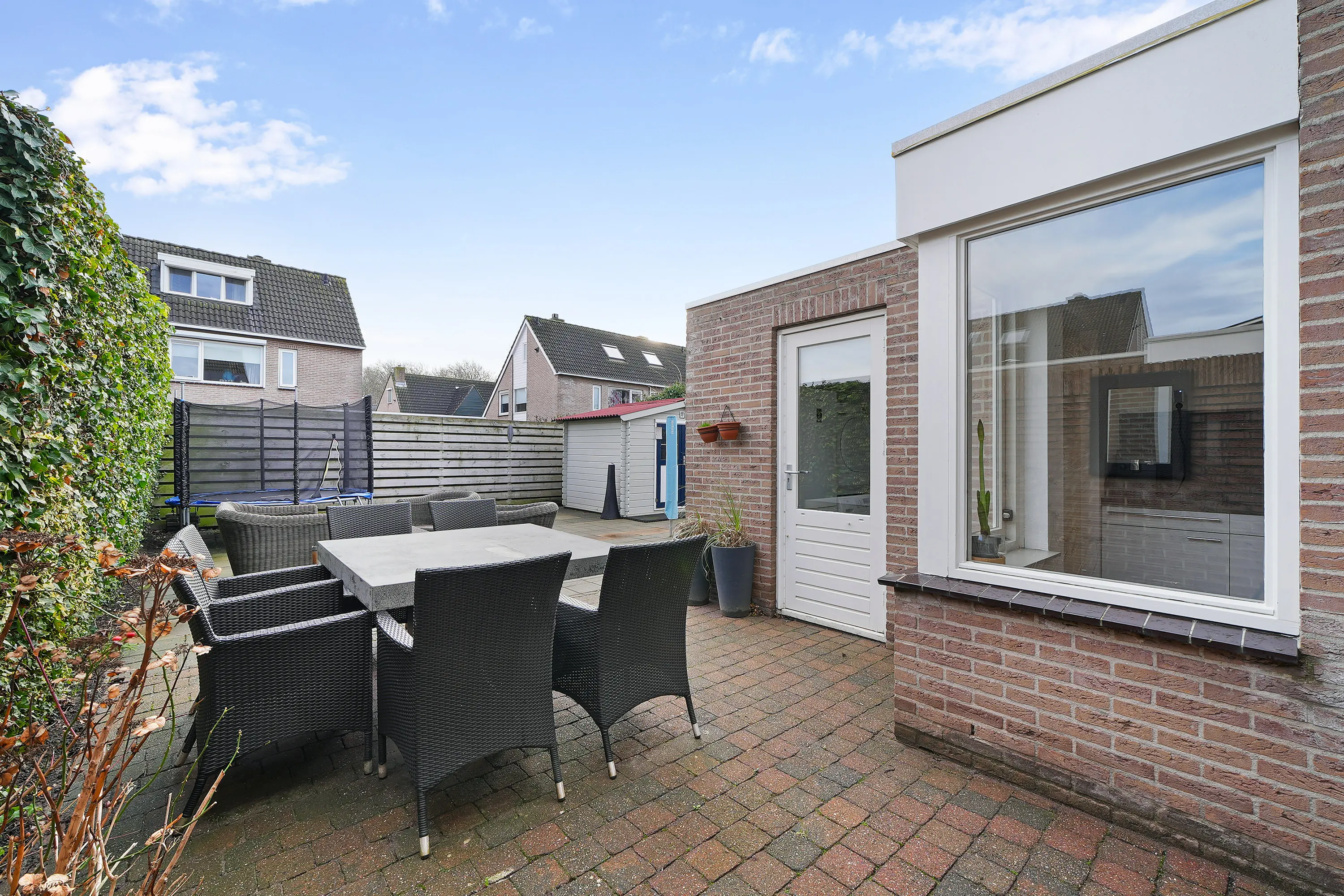 De woning beschikt over een verzorgde brede tuin (Zuidoosten) waar u in alle rust kunt genieten van het buitenleven. De oprit biedt parkeergelegenheid op eigen terrein en is voorzien van een carport. Daarnaast is er dankzij de garage en bijkeuken meer dan voldoende bergruimte.