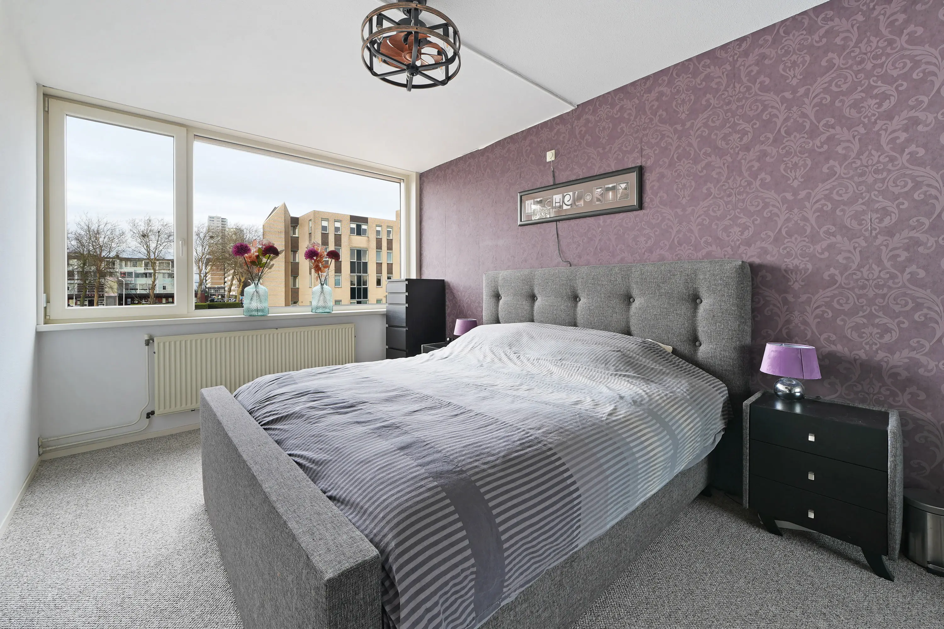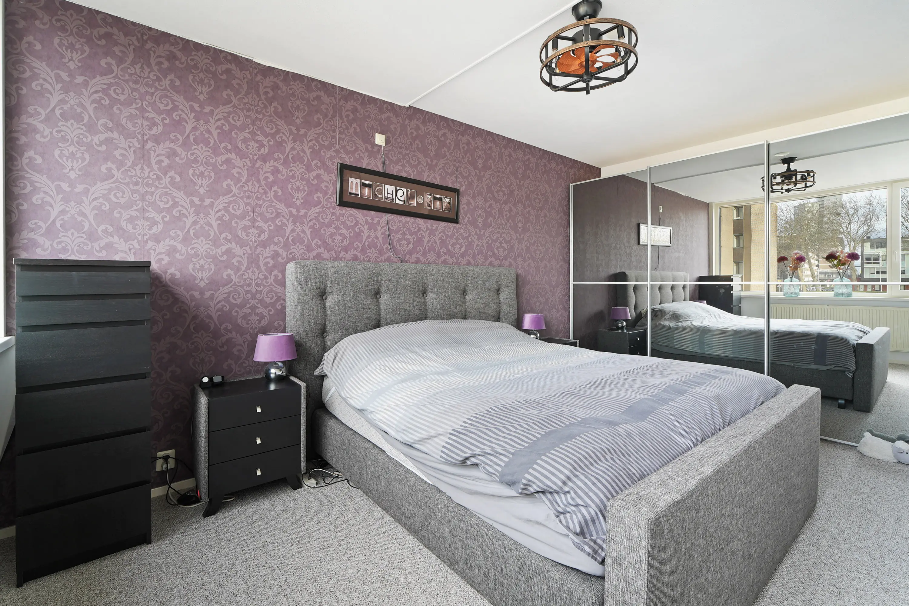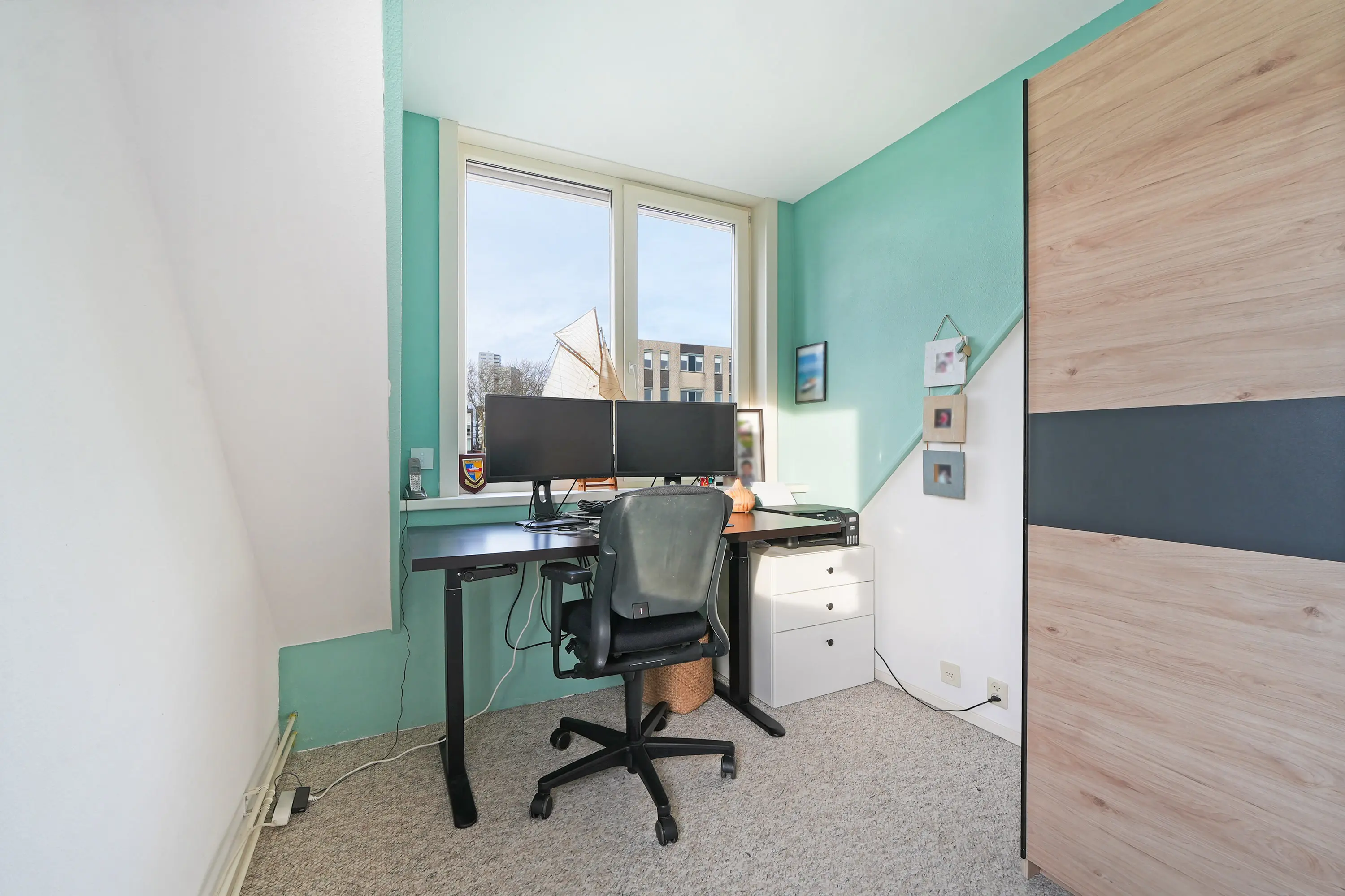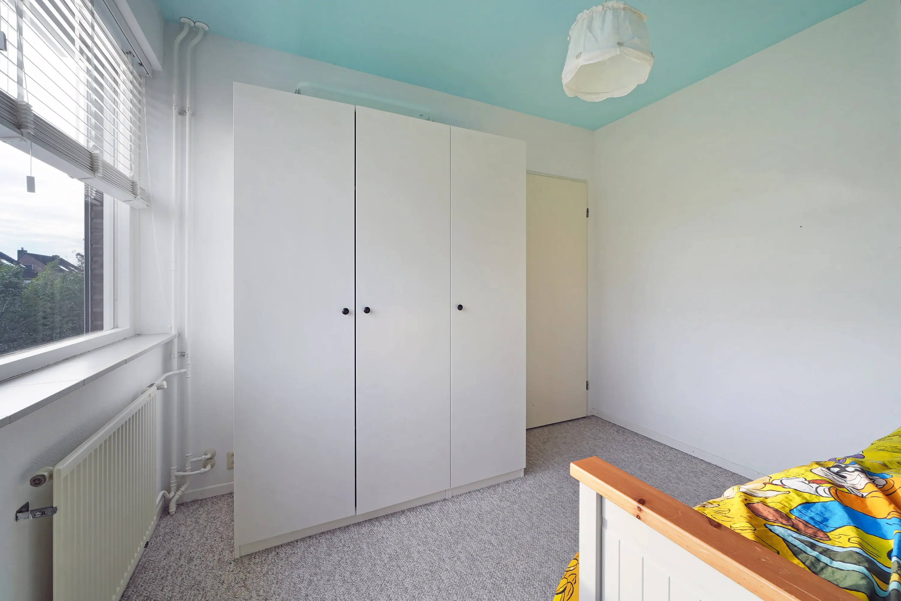 Overloop met opberg mogelijkheden en de vierde slaapkamer. Een mooie ruimte welke goed te gebruiken is als slaap,- werk of kantoorruimte.