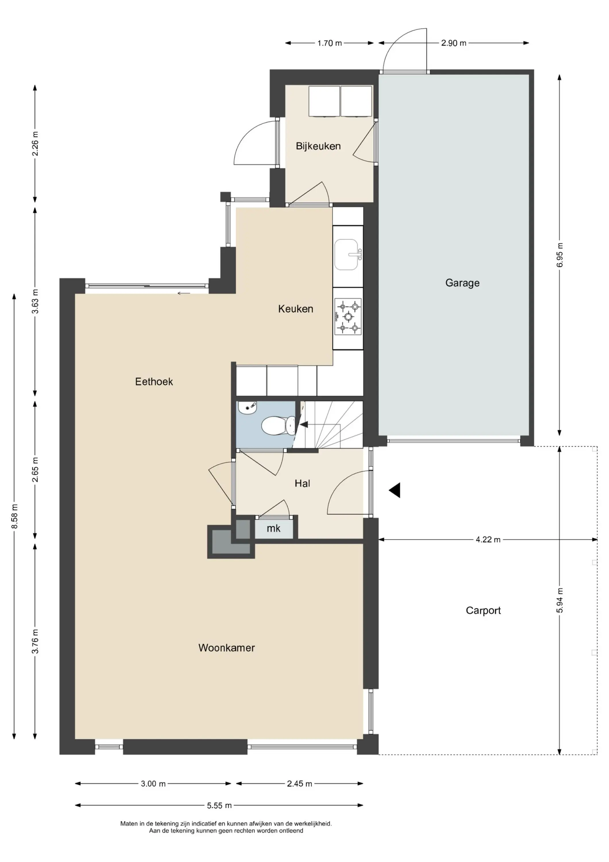 Deze informatie is door ons met de nodige zorgvuldigheid samengesteld. Onzerzijds wordt echter geen enkele aansprakelijkheid aanvaard voor enige onvolledigheid, onjuistheid of anderszins, dan wel de gevolgen daarvan. Alle opgegeven maten en oppervlakten zijn indicatief.