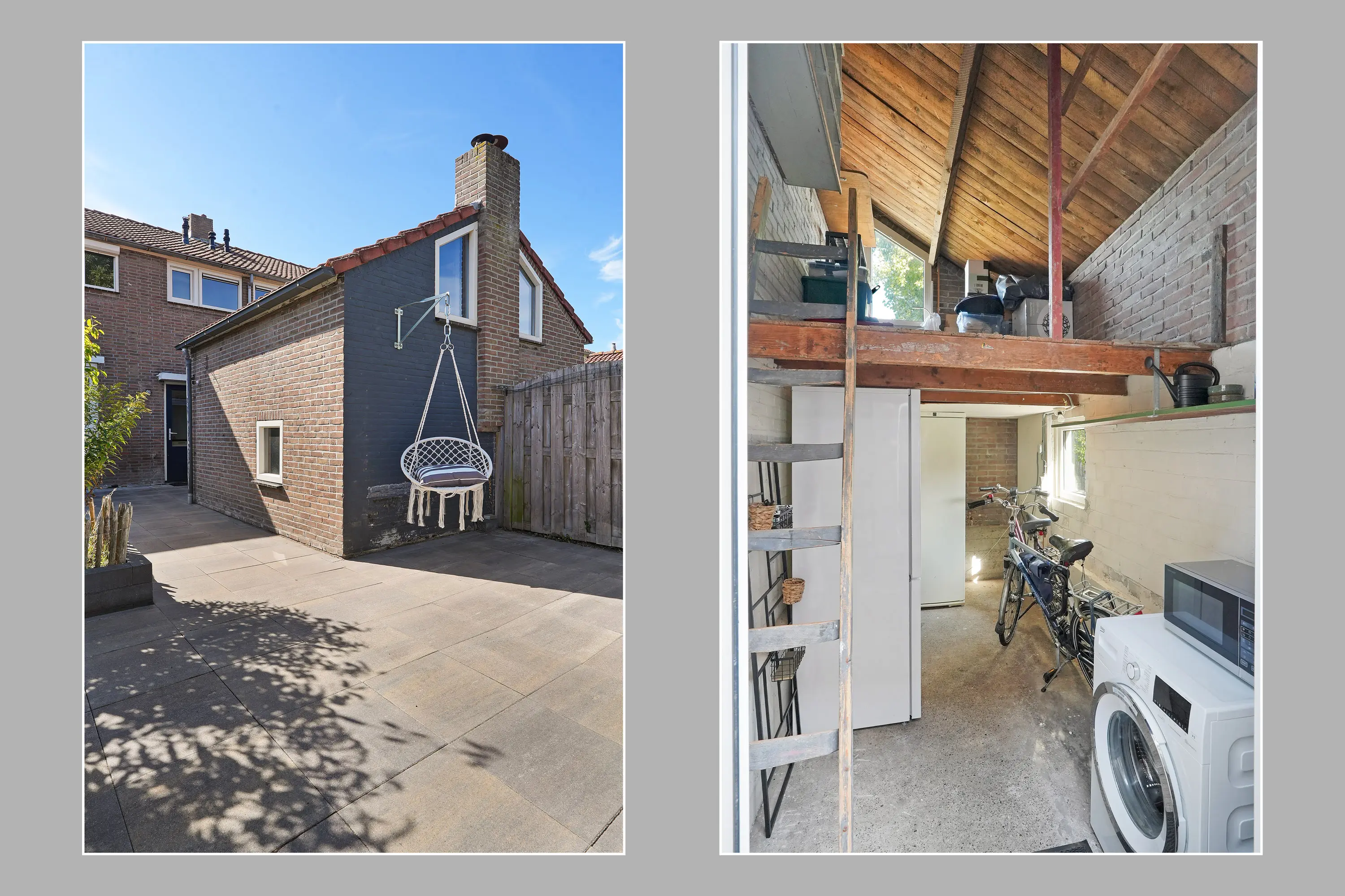 Het ruime terras nodigt uit tot lange zomeravonden met familie en vrienden. Kinderen hebben volop speelruimte, terwijl de aanwezige berging extra gemak biedt voor het stallen van fietsen of tuingereedschap. De vrije achterom maakt het geheel praktisch in gebruik.