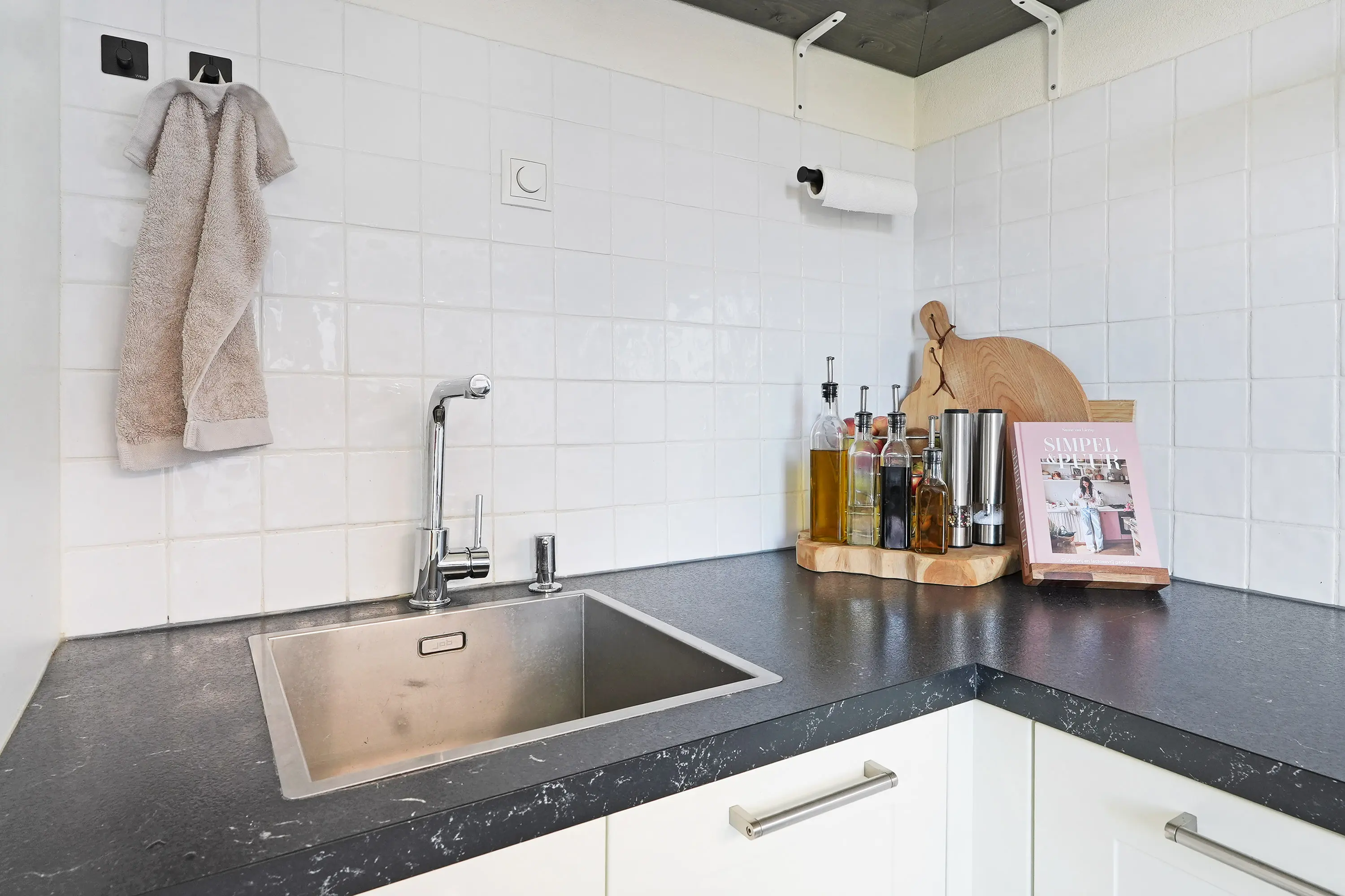 De woonkamer is heerlijk licht dankzij de grote ramen aan zowel de voor- als achterzijde. Aan de tuinzijde bevindt zich de eethoek, die in open verbinding staat met de keuken. Deze keuken is licht van kleur en voorzien van hedendaags comfort. Het grote fornuis maakt het koken voor familie of vrienden tot een feest. Vanuit de keuken is er toegang tot de ruime achtertuin, een fijne plek om te ontspannen, te tuinieren of waar kinderen veilig kunnen spelen.