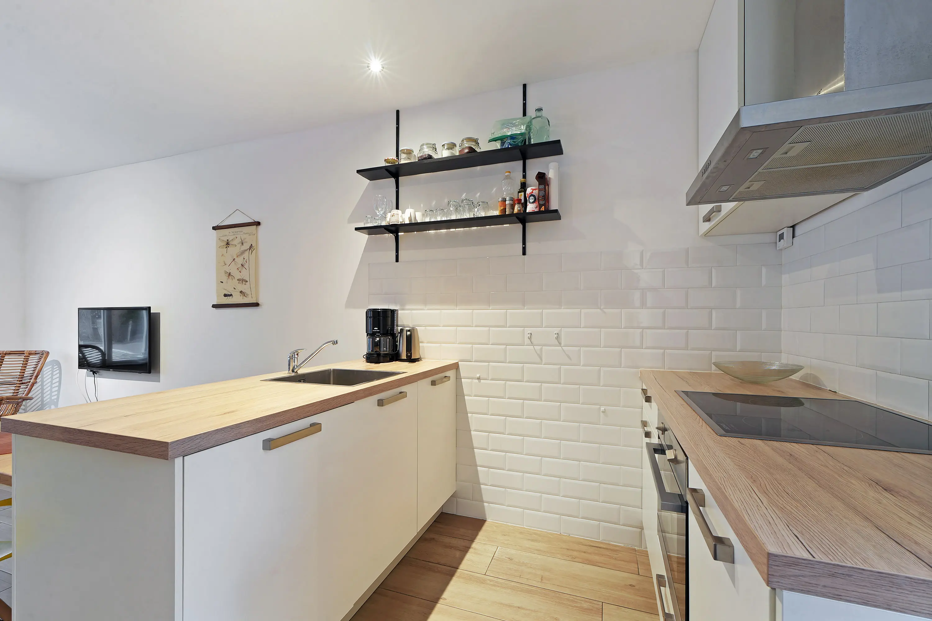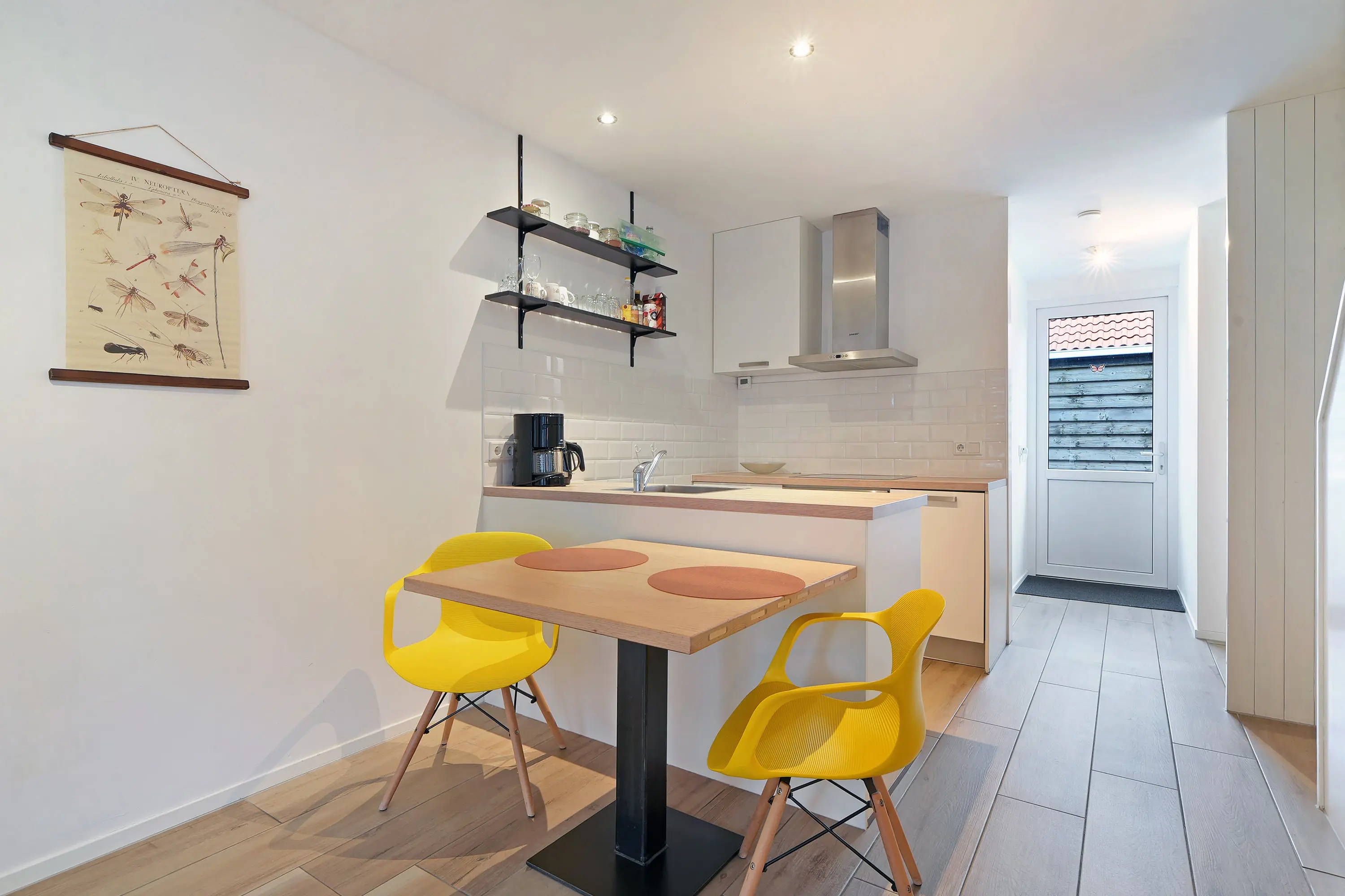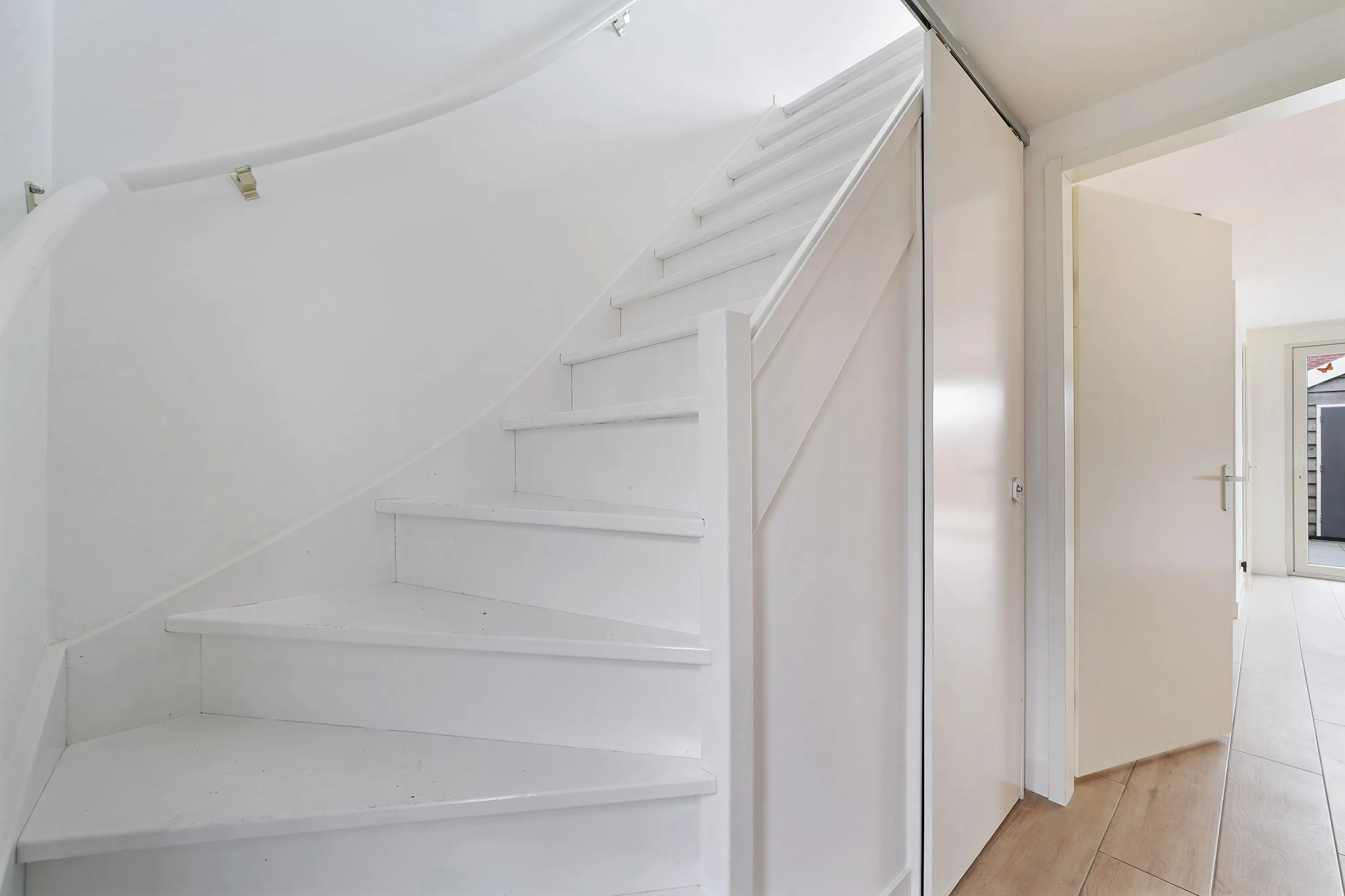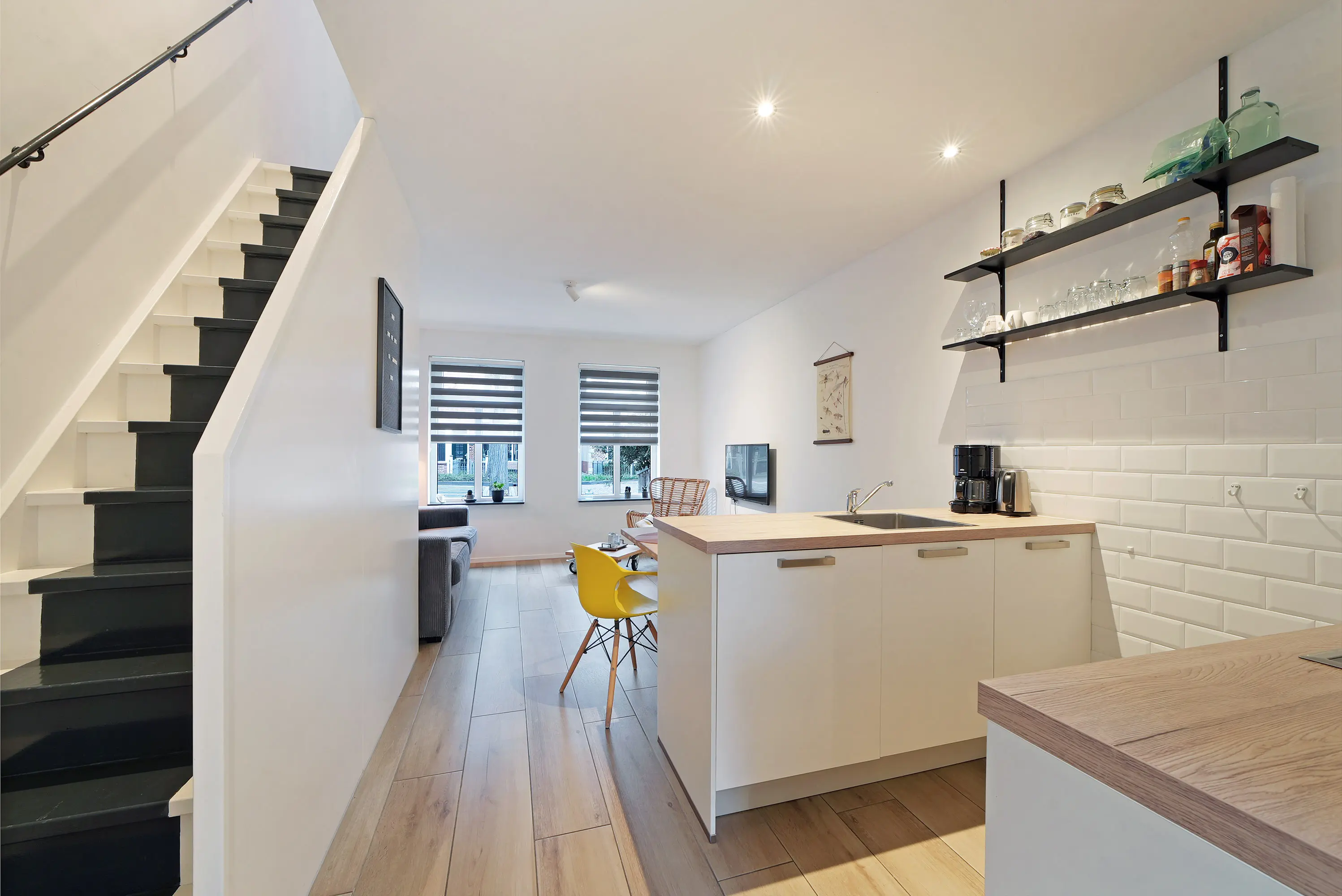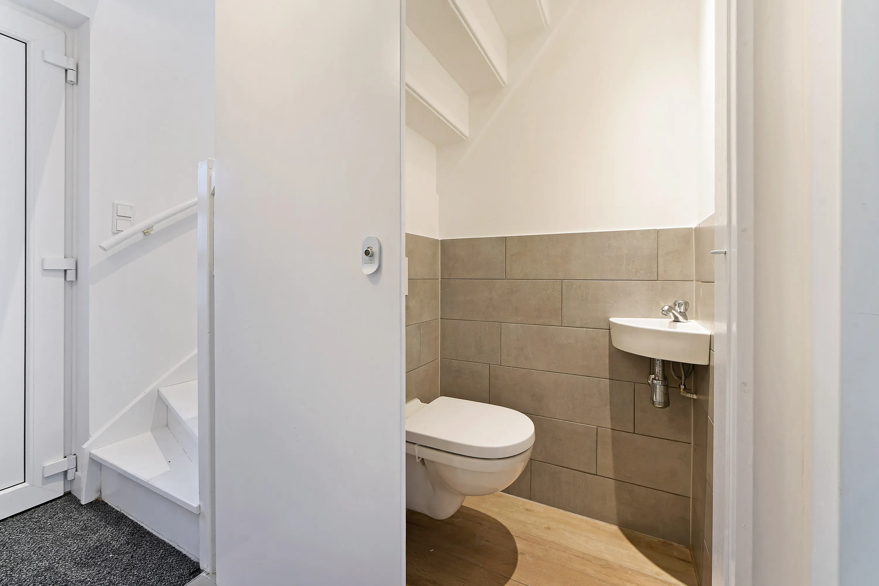 Het tweede, zelfstandige woongedeelte is bereikbaar via de achterzijde van de woning. Bij binnenkomst komt u in de hal met toegang tot de badkamer en een separaat toilet. Aansluitend vindt u de fraaie keuken, waarna u aan de voorzijde het gezellige woongedeelte bereikt. Op de verdieping beschikt deze woning over een slaapkamer en een eigen dakterras.