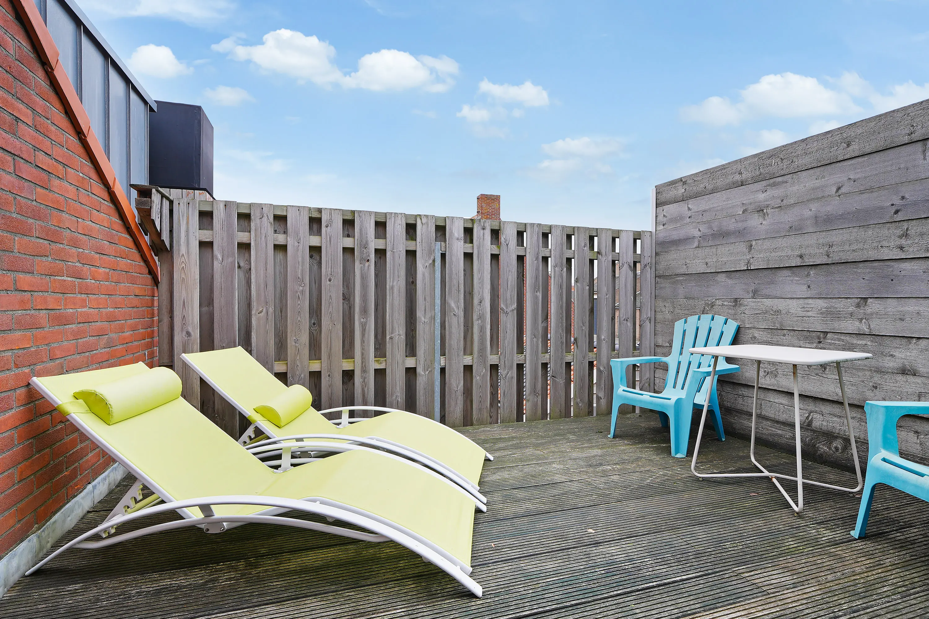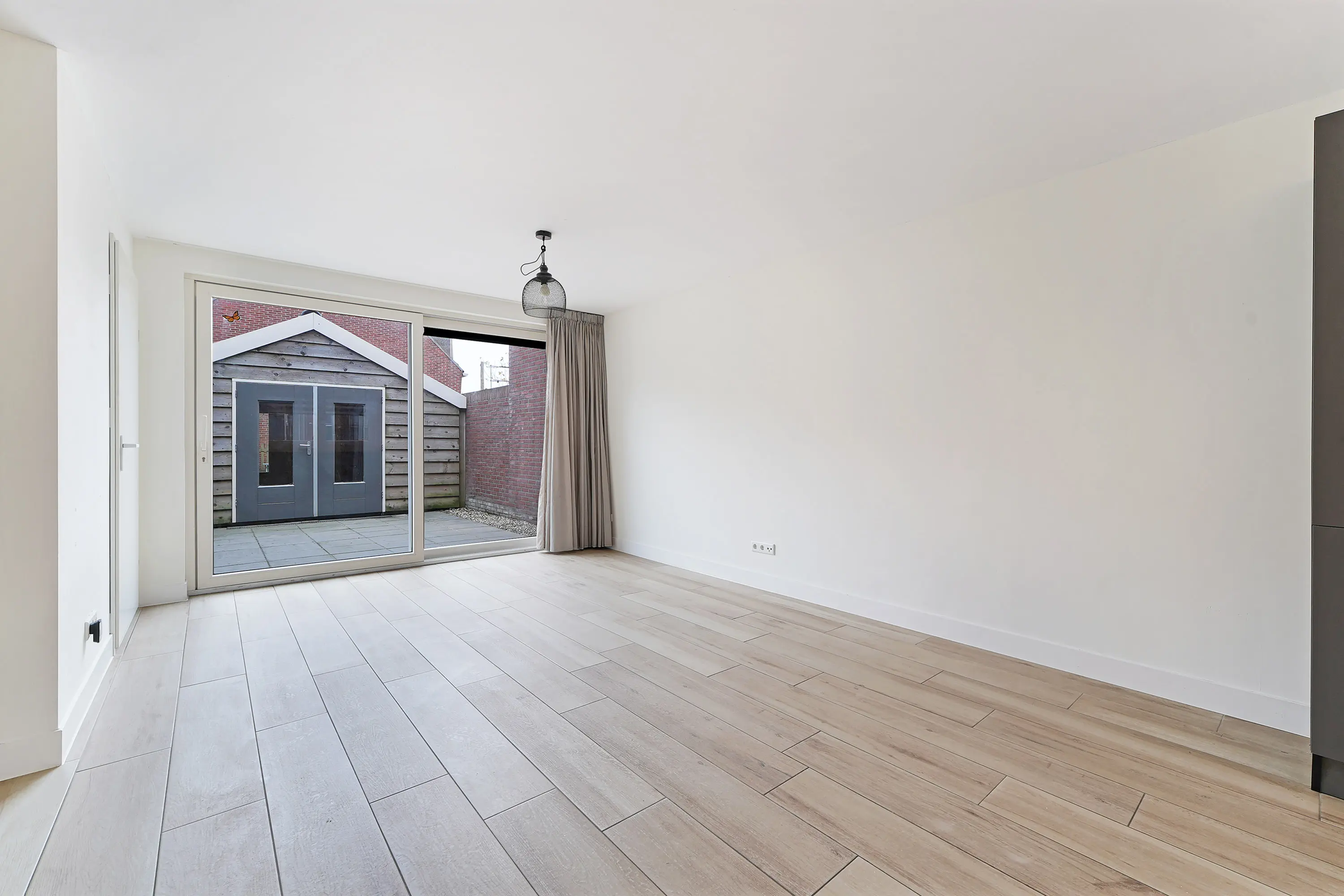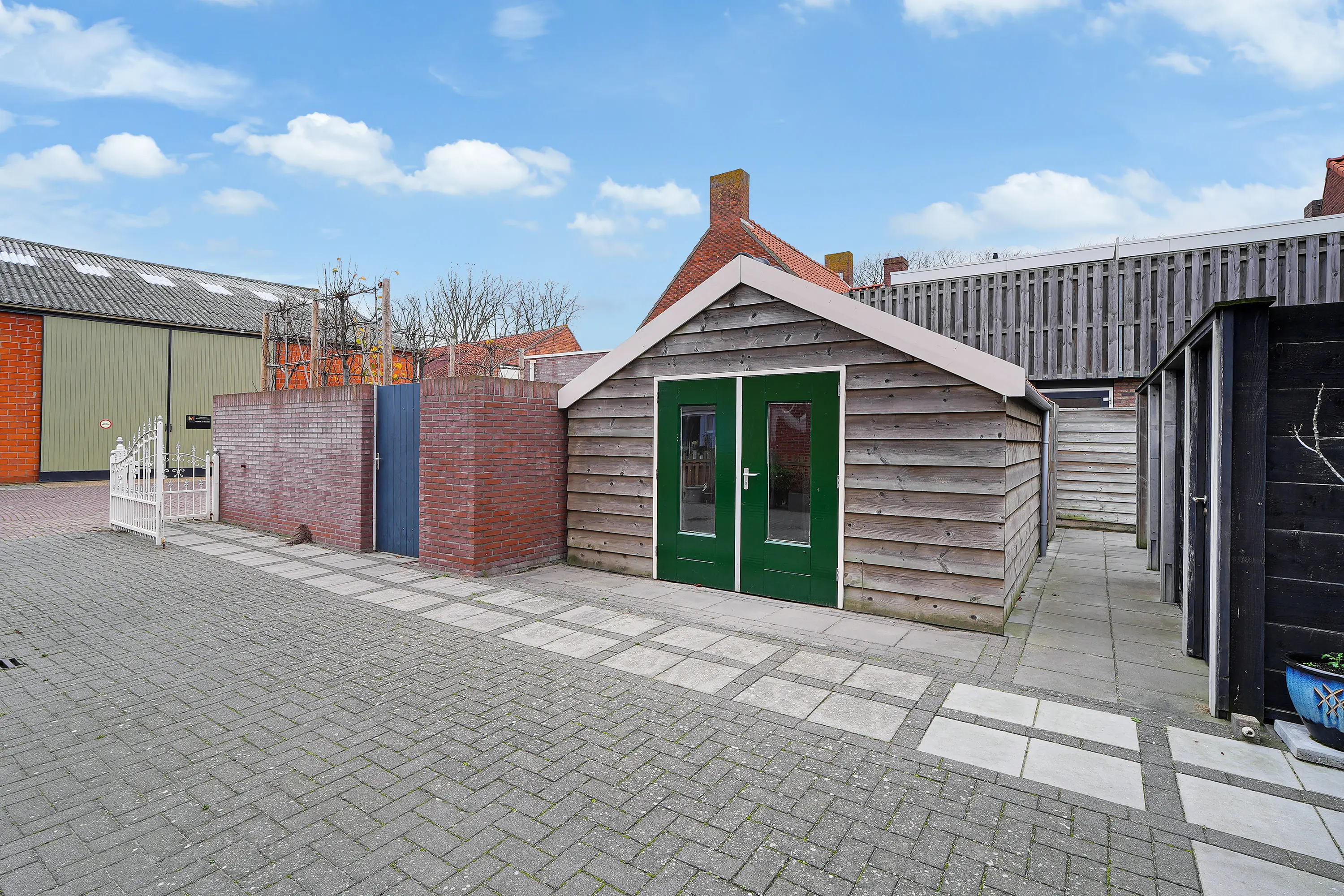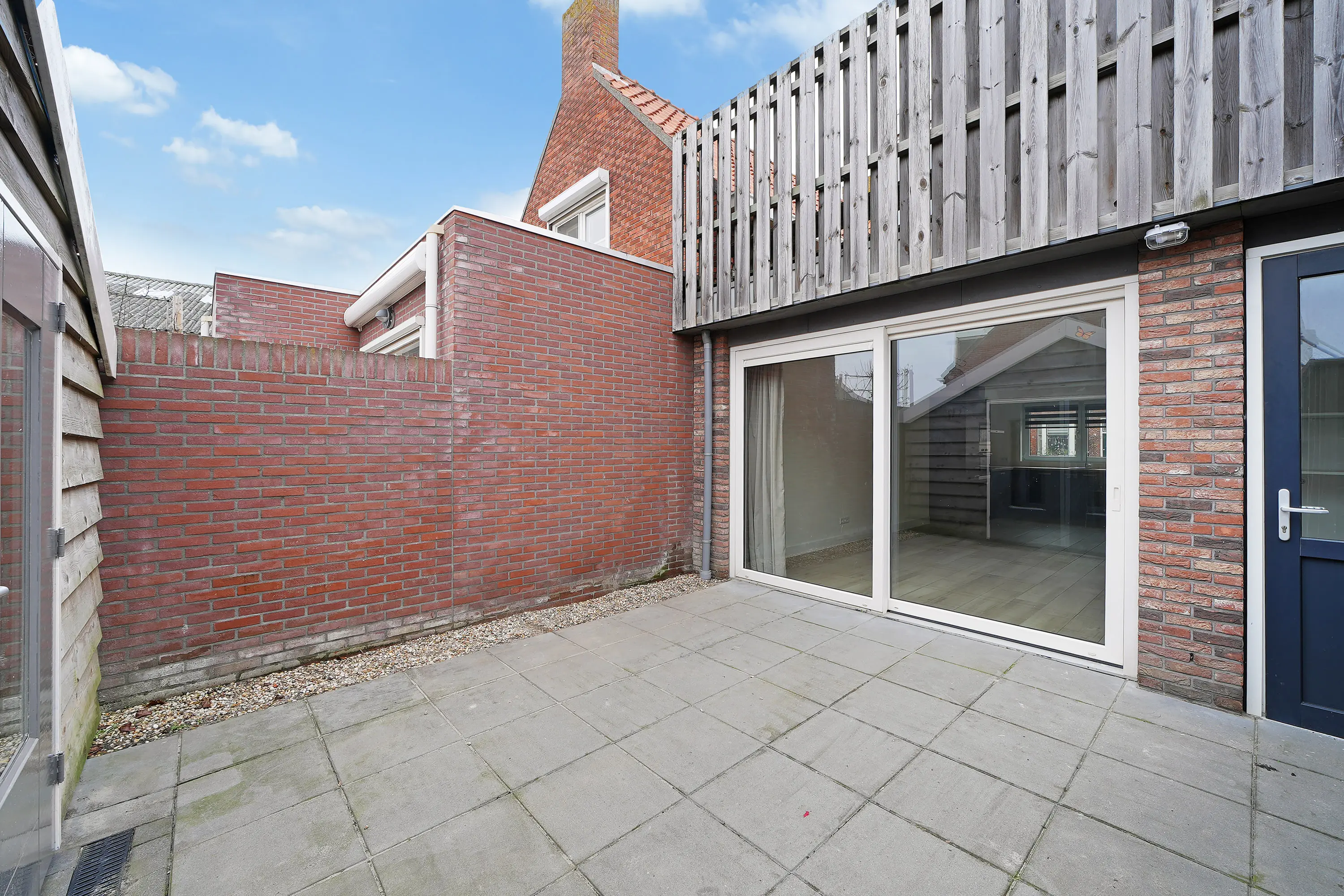 De onderhoudsvrije tuin biedt voldoende privacy en is voorzien van een ruime schuur, ideaal voor het opbergen van spullen of het stallen van fietsen.